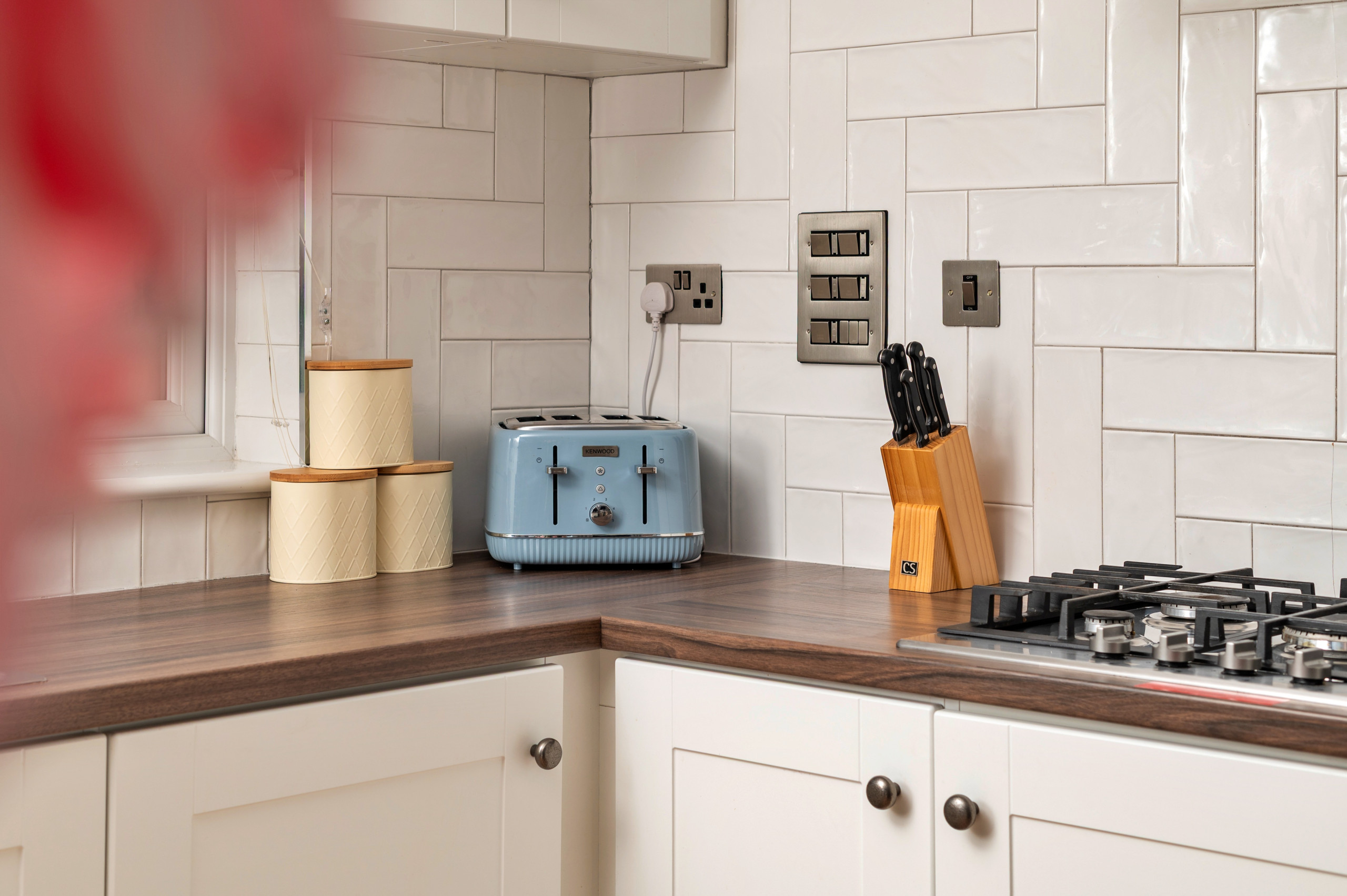 Die Küche ist ausgestattet in einen Kühlschrank, eine Mikrowelle, ein Backofen, Gefrierschrank, eine Spülmaschine, Geschirr/Besteck, Kochutensilien, eine Kaffeemaschine, einen Toaster und einen Wasserkocher.