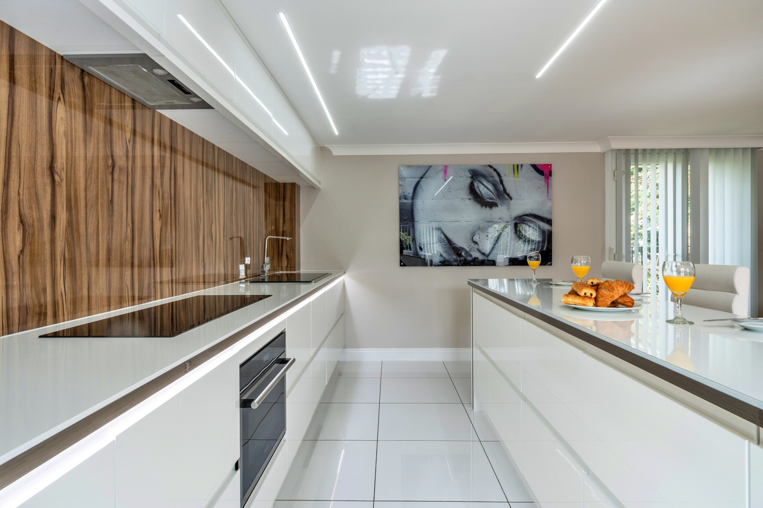 Die Küche ist ausgestattet in einen Kühlschrank, eine Mikrowelle, ein Backofen, Gefrierschrank, eine Spülmaschine, Geschirr/Besteck, Kochutensilien, einen Toaster und einen Wasserkocher.