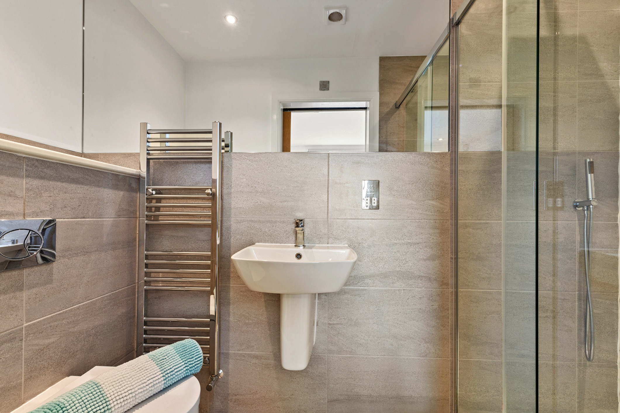 Die Küche ist ausgestattet in einen Kühlschrank, eine Mikrowelle, ein Backofen, Gefrierschrank, Geschirr/Besteck, Kochutensilien, einen Toaster und einen Wasserkocher.