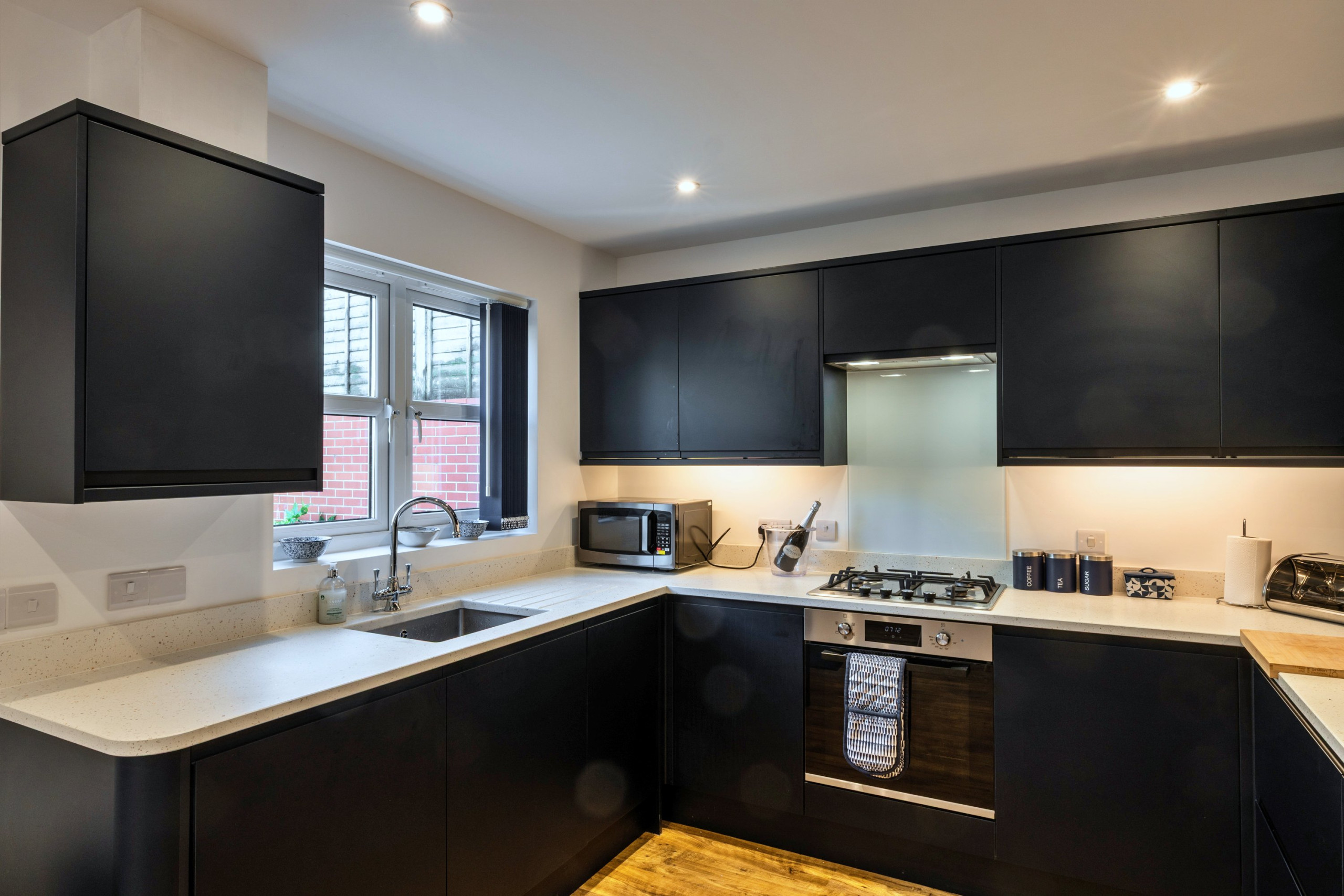 Die Küche ist ausgestattet in einen Kühlschrank, eine Mikrowelle, ein Backofen, Gefrierschrank, eine Spülmaschine, Geschirr/Besteck, Kochutensilien, einen Toaster und einen Wasserkocher.