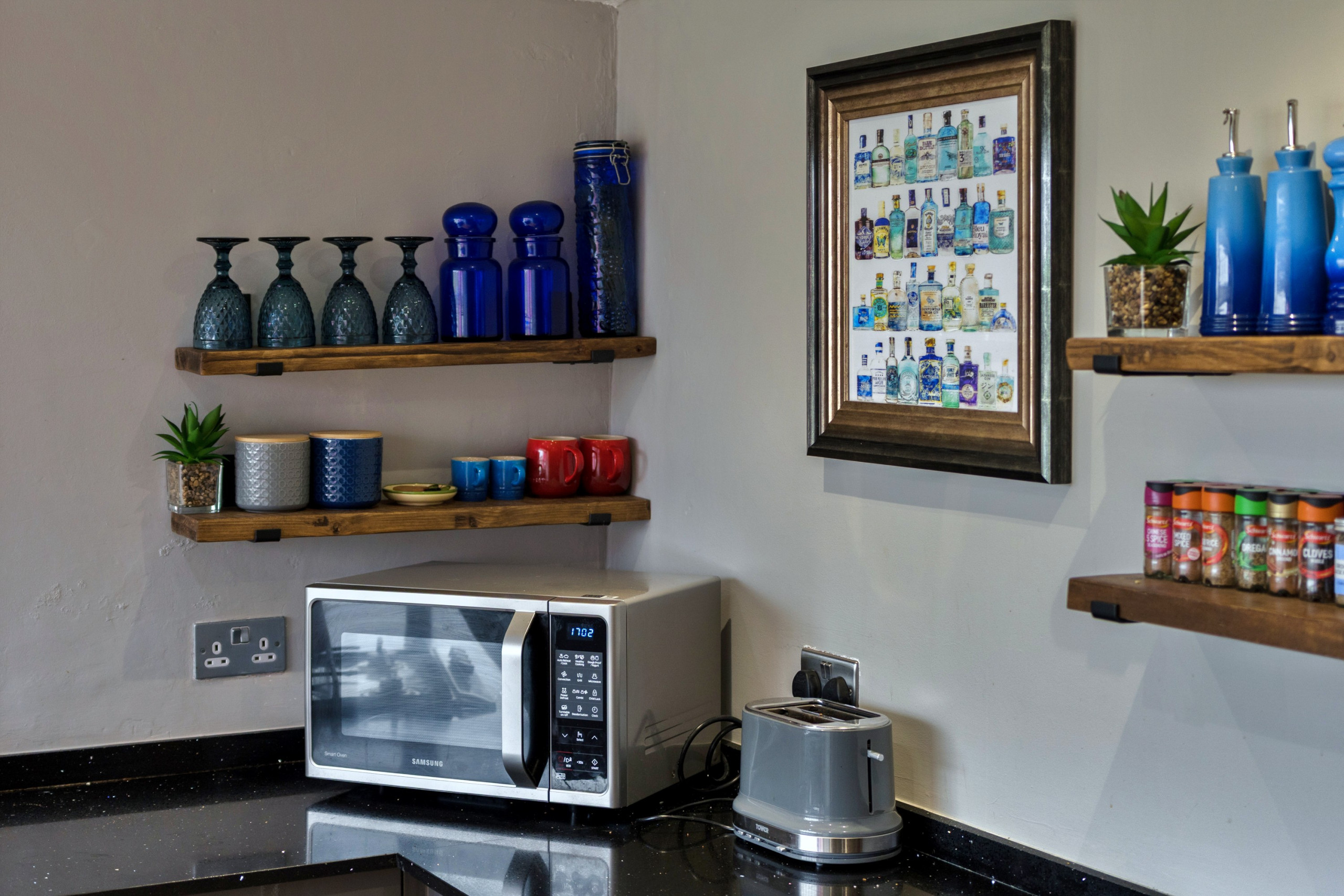 Die Küche ist ausgestattet in einen Kühlschrank, eine Mikrowelle, ein Backofen, Gefrierschrank, eine Spülmaschine, Geschirr/Besteck, Kochutensilien, einen Toaster und einen Wasserkocher.
