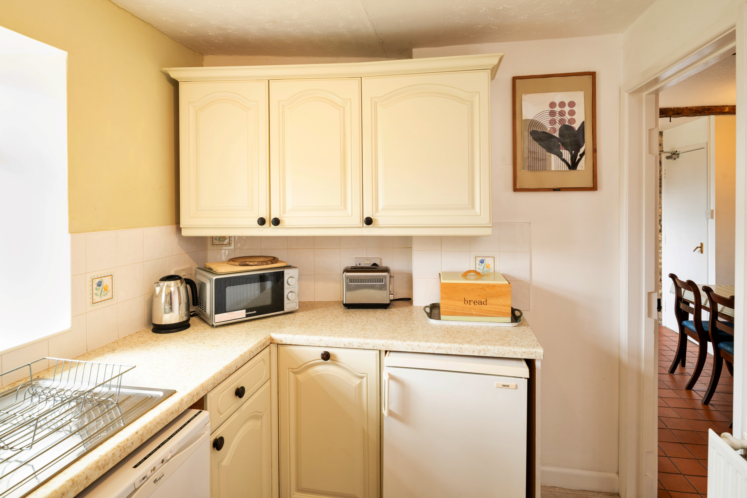 Die Küche ist ausgestattet in einen Kühlschrank, eine Mikrowelle, ein Backofen, Gefrierschrank, Geschirr/Besteck, Kochutensilien, einen Toaster und einen Wasserkocher.