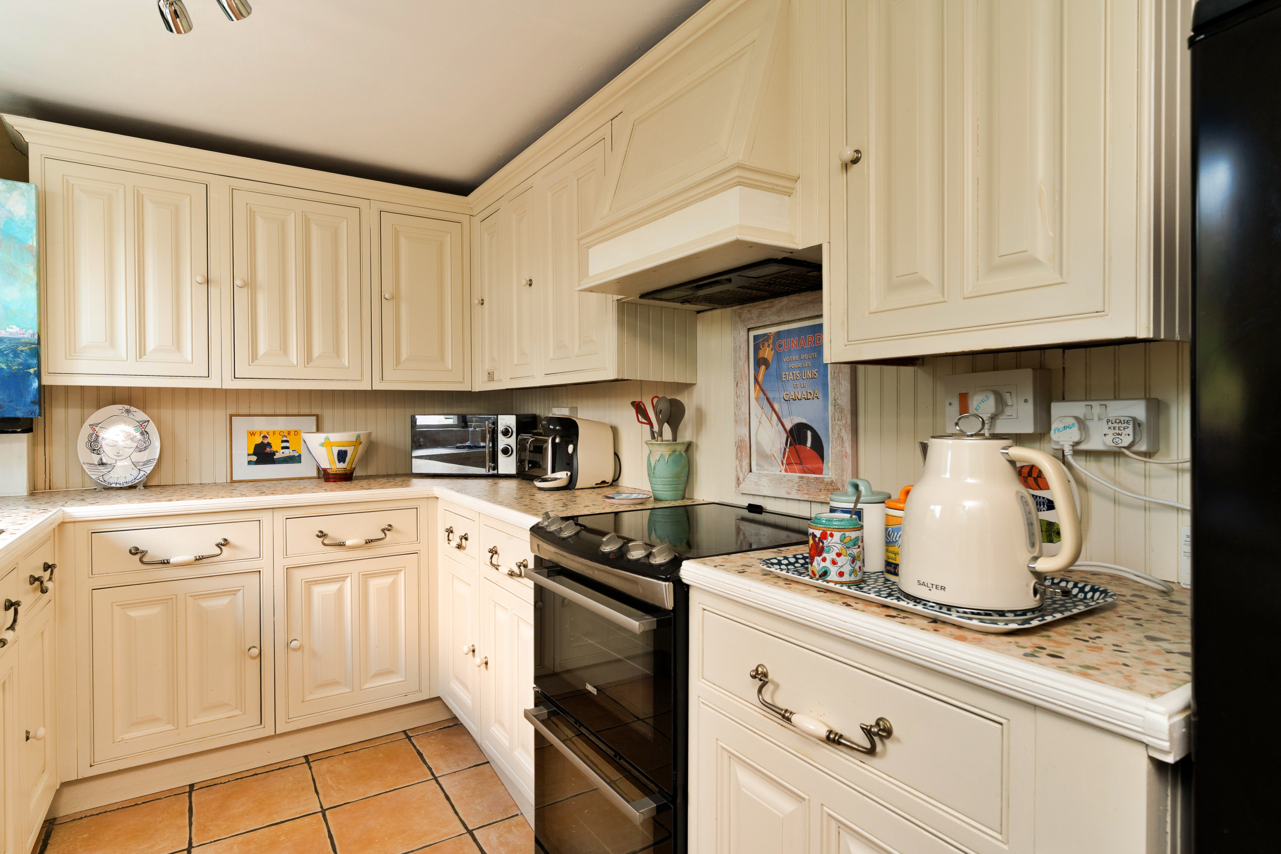 Die Küche ist ausgestattet in einen Kühlschrank, eine Mikrowelle, ein Backofen, Gefrierschrank, Geschirr/Besteck, Kochutensilien, eine Kaffeemaschine, einen Toaster und einen Wasserkocher.