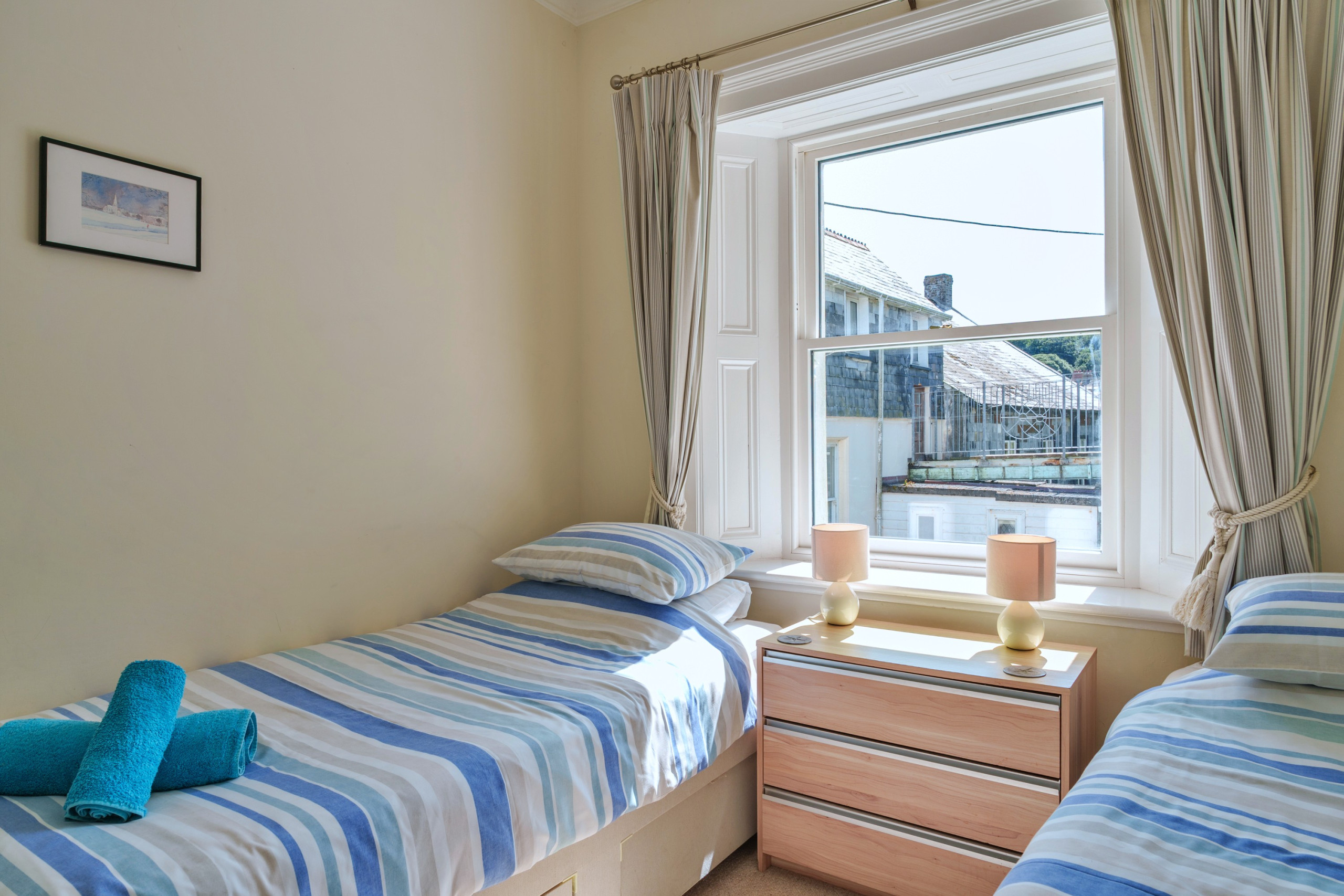 Great location above the rocks at the end of the Kingsand Beach with access to the beach. Main bedroom, living room and kitchen looking out to sea which was delightful Nicely decorated and good amenities. Would definitely recommend.