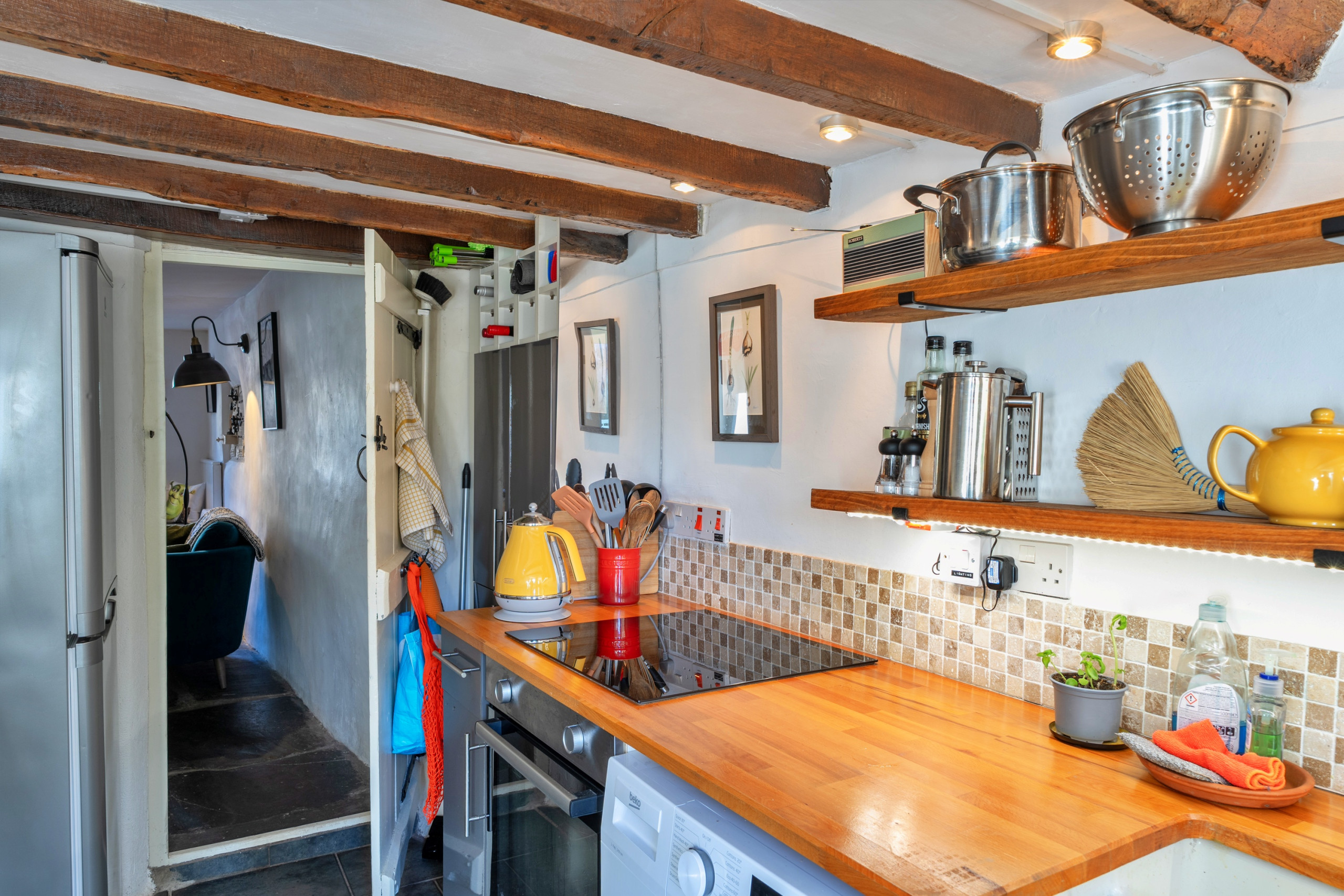 Die Küche ist ausgestattet in einen Kühlschrank, ein Backofen, Gefrierschrank, Geschirr/Besteck, Kochutensilien, einen Toaster und einen Wasserkocher.
