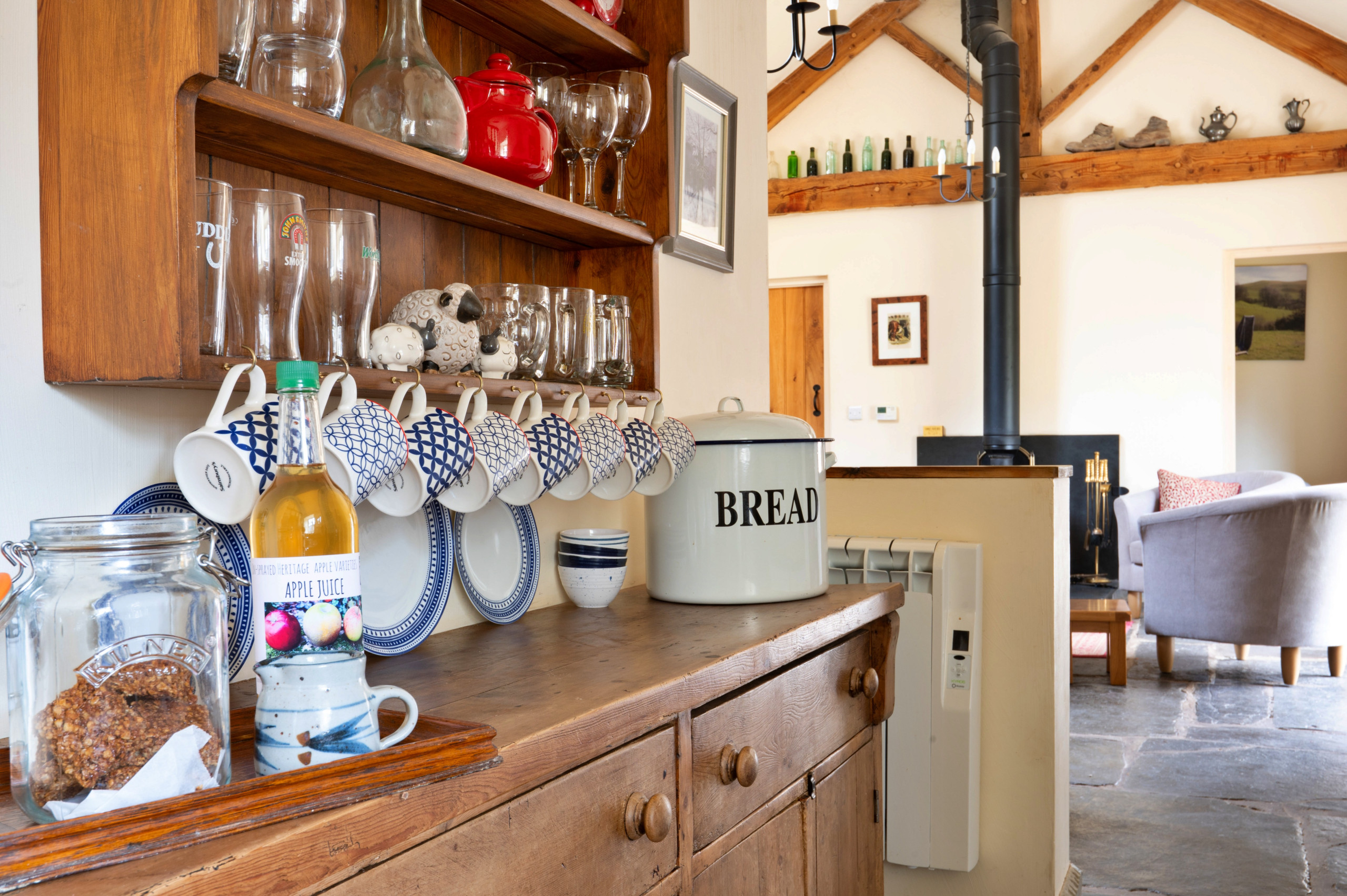 Die Küche ist ausgestattet in einen Kühlschrank, eine Mikrowelle, ein Backofen, Gefrierschrank, eine Spülmaschine, Geschirr/Besteck, Kochutensilien, einen Toaster und einen Wasserkocher.