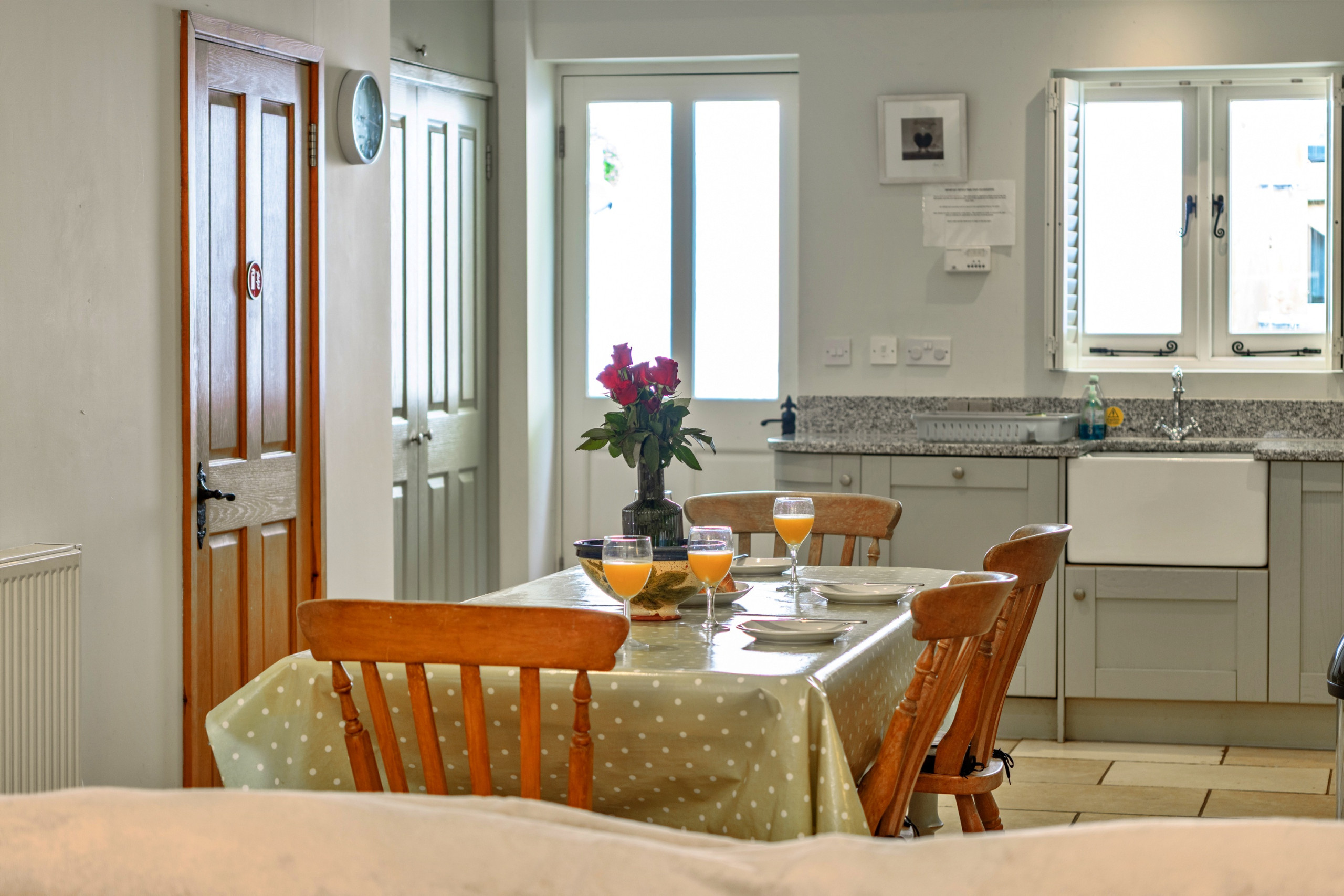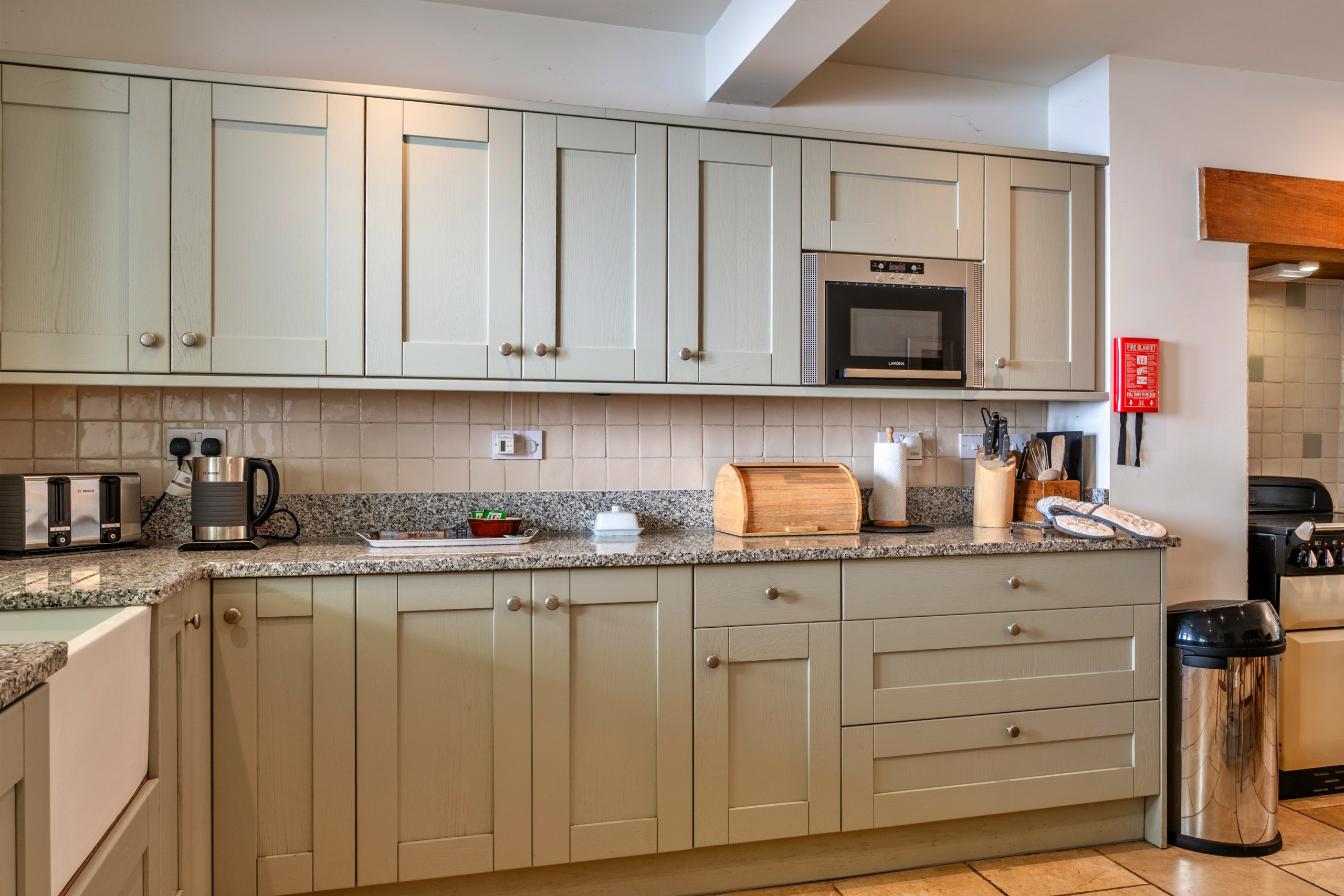 Die Küche ist ausgestattet in einen Kühlschrank, eine Mikrowelle, ein Backofen, Gefrierschrank, eine Spülmaschine, Geschirr/Besteck, Kochutensilien, einen Toaster und einen Wasserkocher.