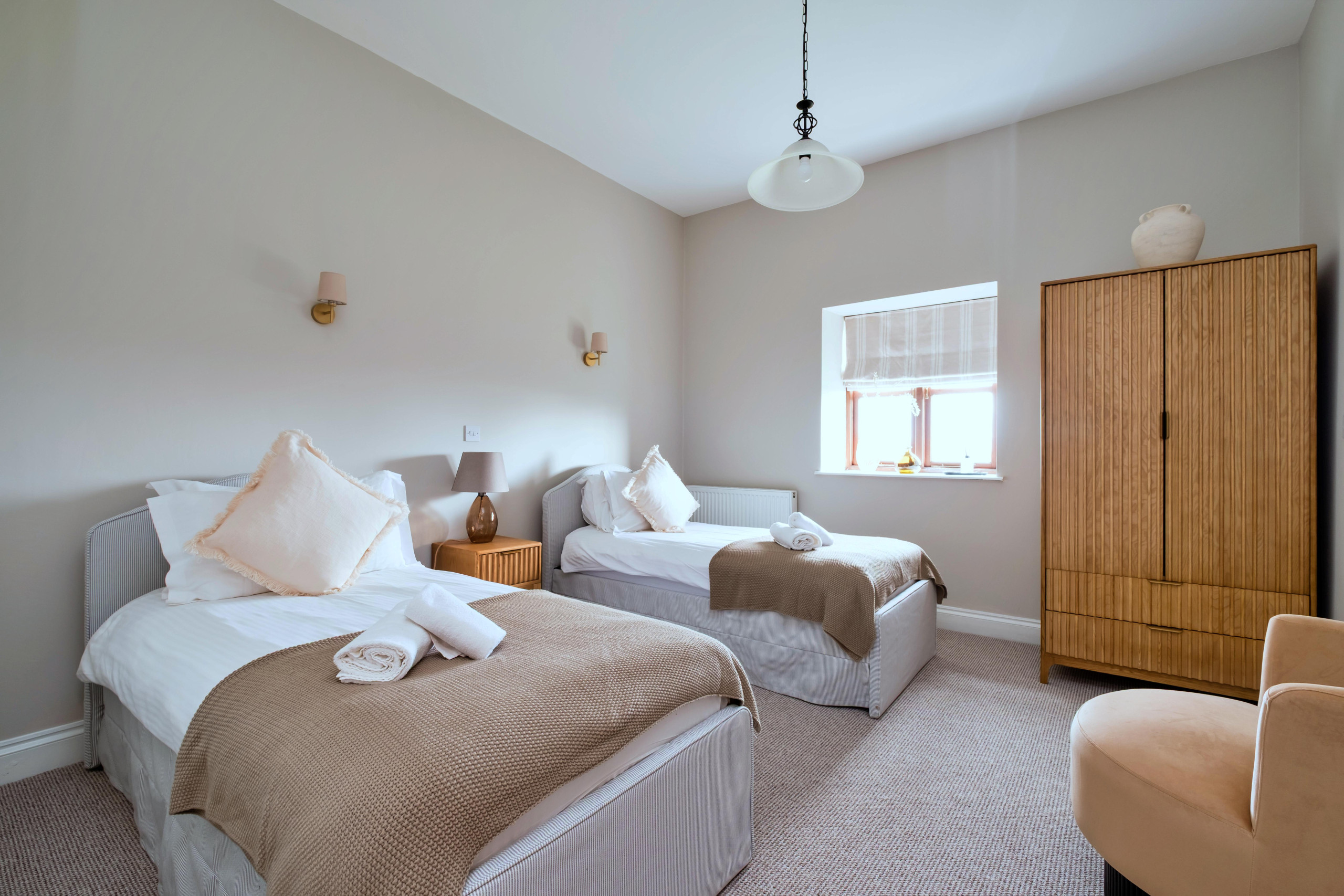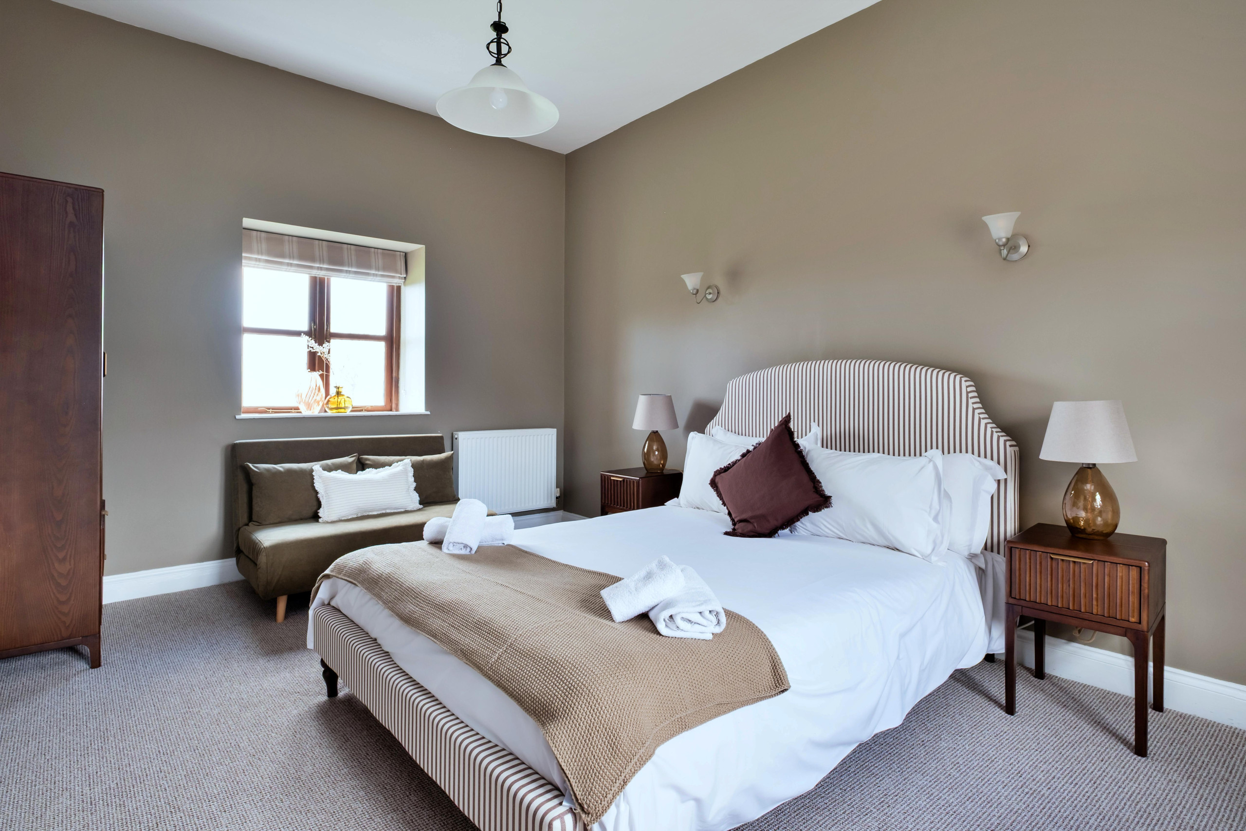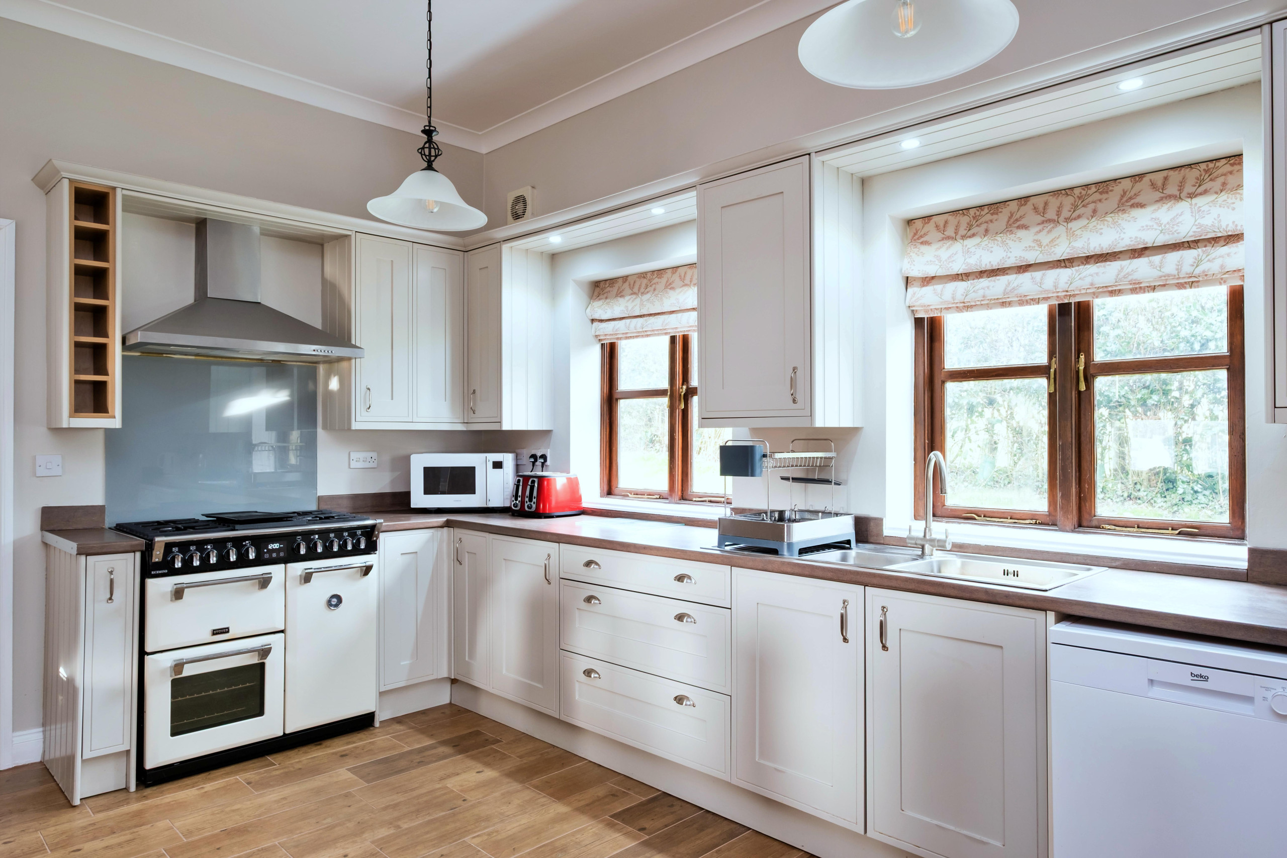The setting was beautiful and the cottage perfect for our needs. All the ensuite bath/shower rooms were modern and spotlessly clean. The beds were very comfortable and the bed linen spotless. The bedrooms were all of a good size and furnished well with plenty of cupboard space. The lounge and kitchen/diner accommodated the number easily. It was lovely to be greeted with bread, butter, milk, biscuits and wine on arrival. The kitchen was well stocked with crockery, cutlery, glasses and saucepans. The cooker was great for so many. A huge bonus was the swimming pool, tennis court and table tennis table in a lovely area for little ones to play. The house manager, Sharon, and the owners we met were very friendly and accommodating.