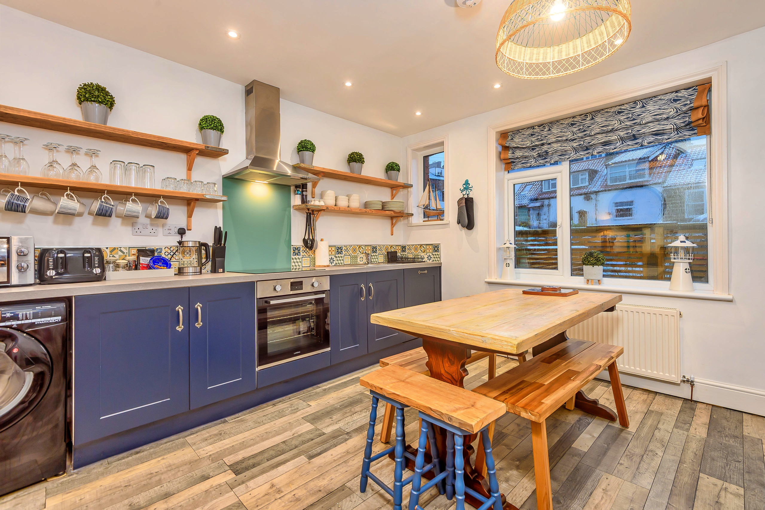Die Küche ist ausgestattet in einen Kühlschrank, eine Mikrowelle, ein Backofen, Gefrierschrank, eine Spülmaschine, Geschirr/Besteck, Kochutensilien, einen Toaster und einen Wasserkocher.