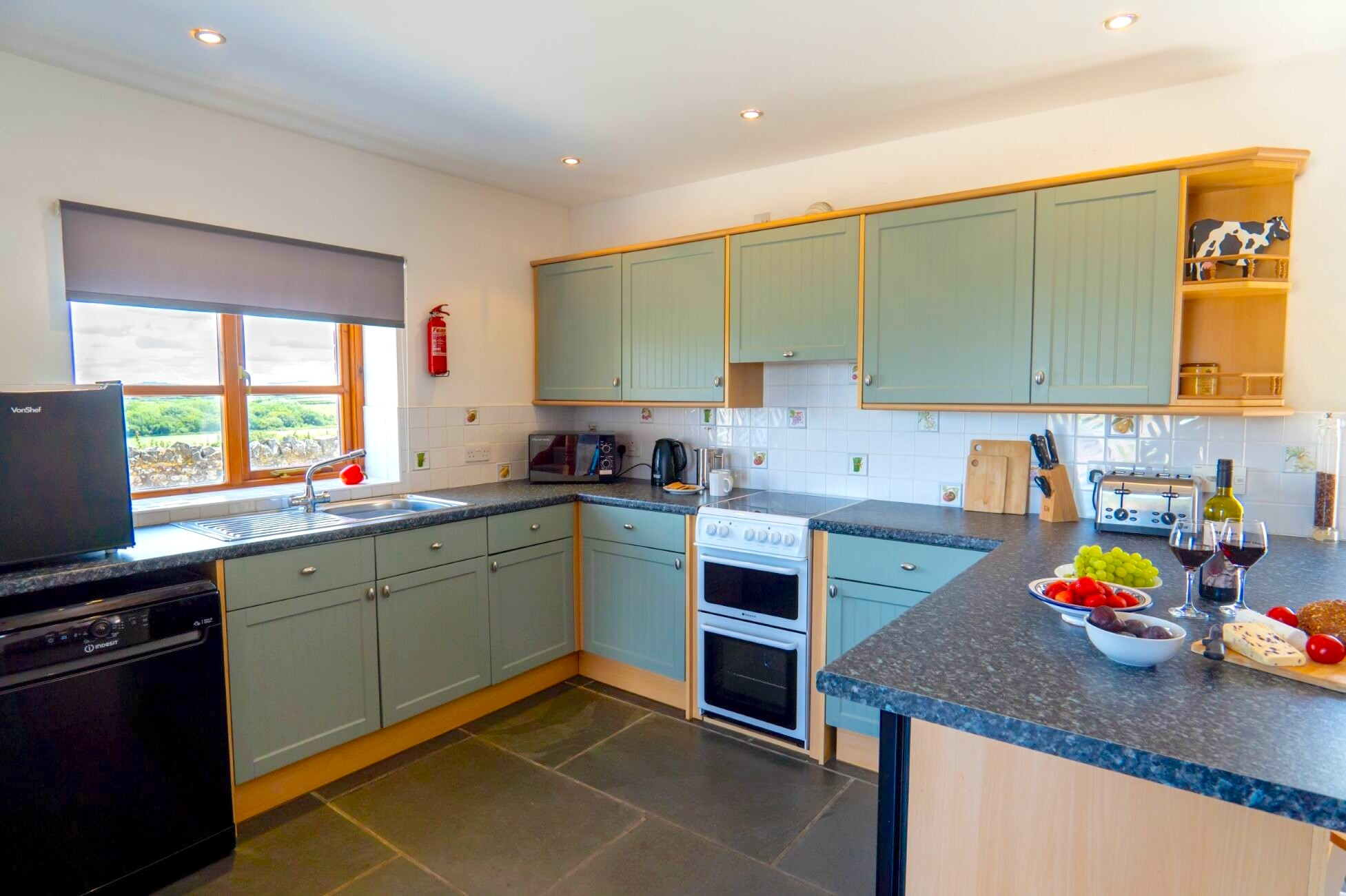 Die Küche ist ausgestattet in einen Kühlschrank, eine Mikrowelle, ein Backofen, Gefrierschrank, Geschirr/Besteck, Kochutensilien, einen Toaster und einen Wasserkocher.