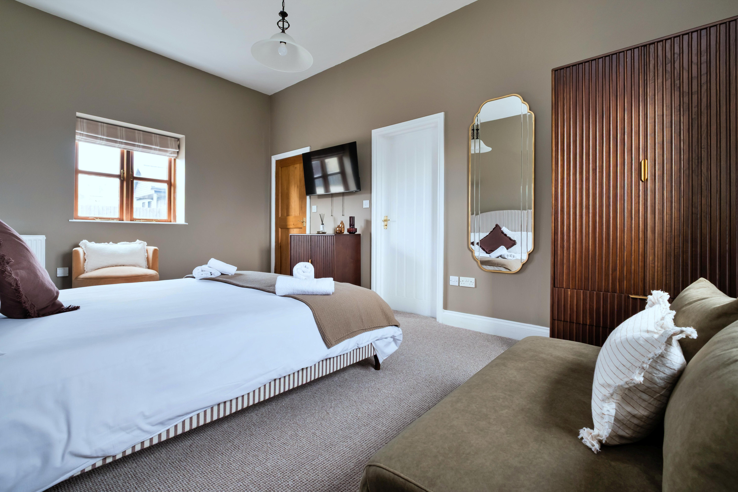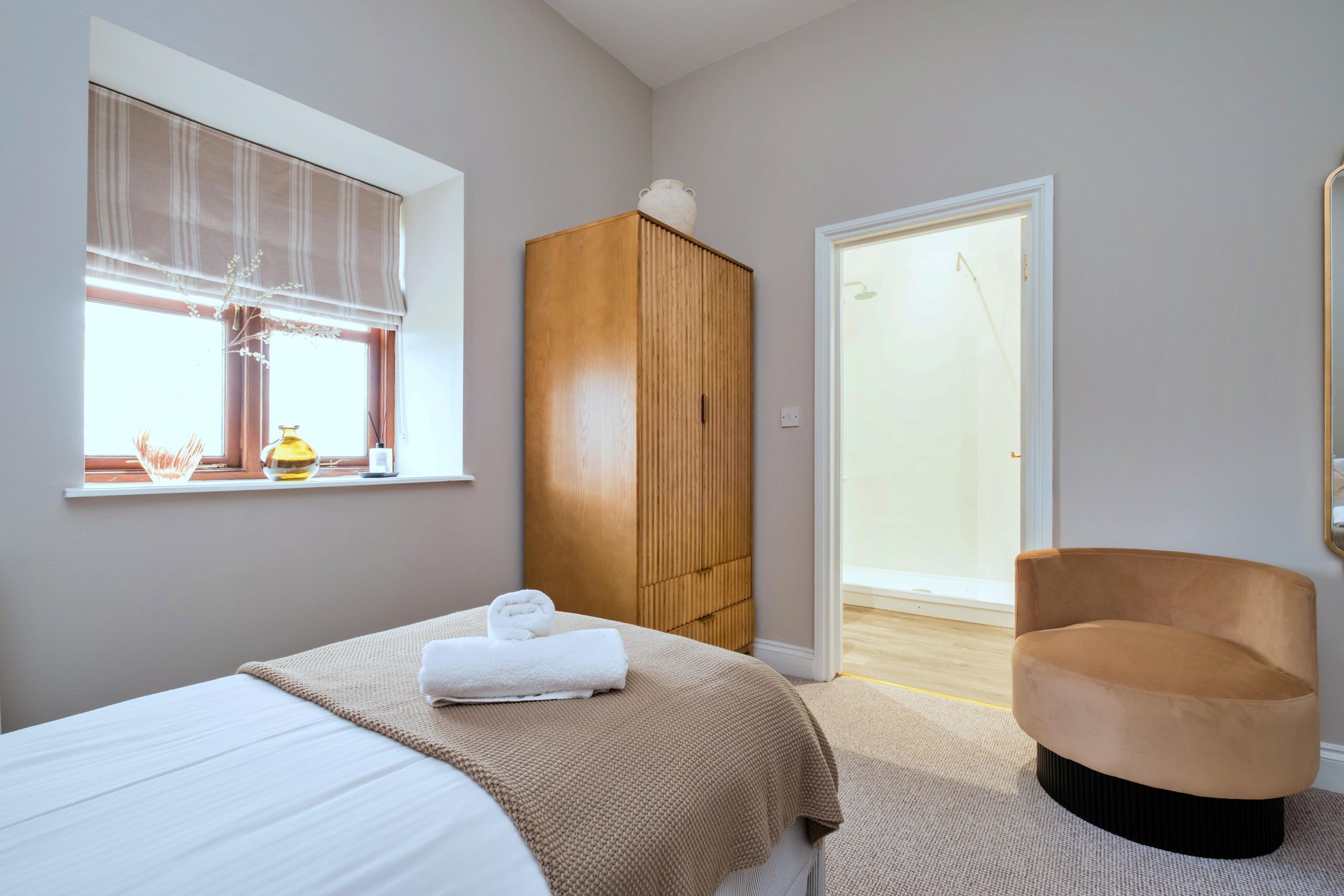 The setting was beautiful and the cottage perfect for our needs. All the ensuite bath/shower rooms were modern and spotlessly clean. The beds were very comfortable and the bed linen spotless. The bedrooms were all of a good size and furnished webekijk meer