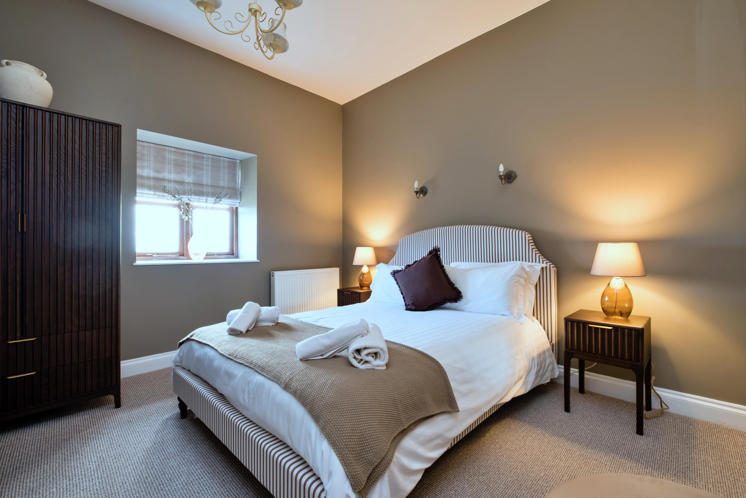 The setting was beautiful and the cottage perfect for our needs. All the ensuite bath/shower rooms were modern and spotlessly clean. The beds were very comfortable and the bed linen spotless. The bedrooms were all of a good size and furnished well with plenty of cupboard space. The lounge and kitchen/diner accommodated the number easily. It was lovely to be greeted with bread, butter, milk, biscuits and wine on arrival. The kitchen was well stocked with crockery, cutlery, glasses and saucepans. The cooker was great for so many. A huge bonus was the swimming pool, tennis court and table tennis table in a lovely area for little ones to play. The house manager, Sharon, and the owners we met were very friendly and accommodating.