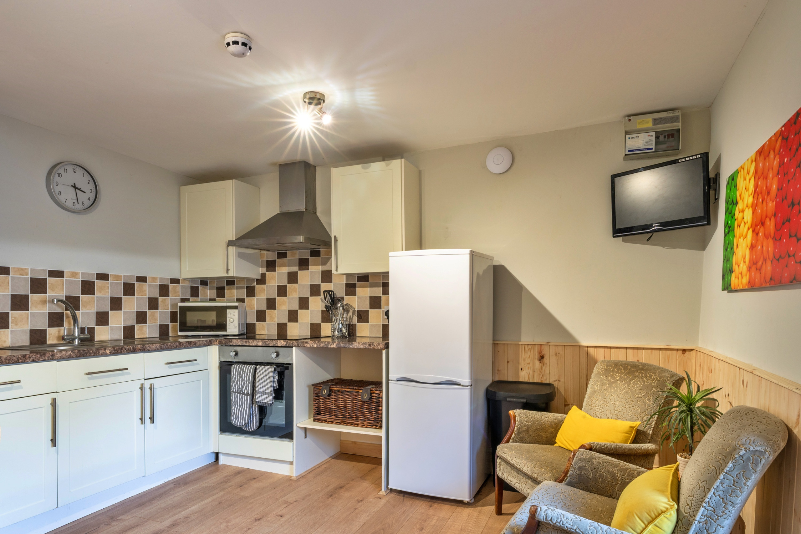 De Keuken is uitgerust met Koelkast, Magnetron, Oven, Vriezer, Vaatwasmachine, Servies/bestek, Keukengerei, Broodrooster, Waterkoker, , .