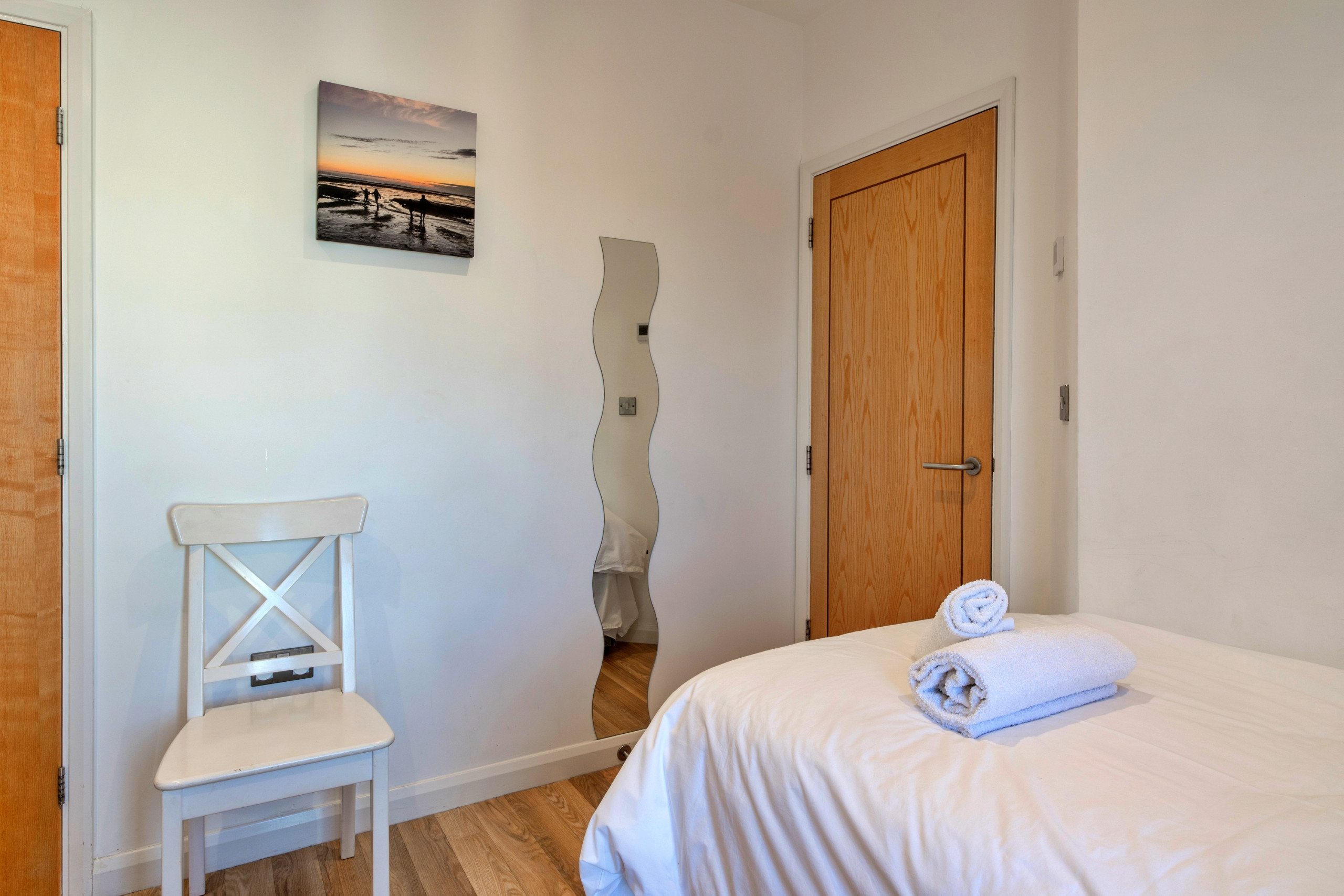 The accommodation is set across the upper two floors. On the second floor, there is a spacious super king-size double bedroom with sea views and its own en suite shower room, alongside a twin bedroom. Climb to the top floor to discover another super king-size double bedroom with the best sea views of all and an en suite shower room, as well as a further twin room and a family bathroom.