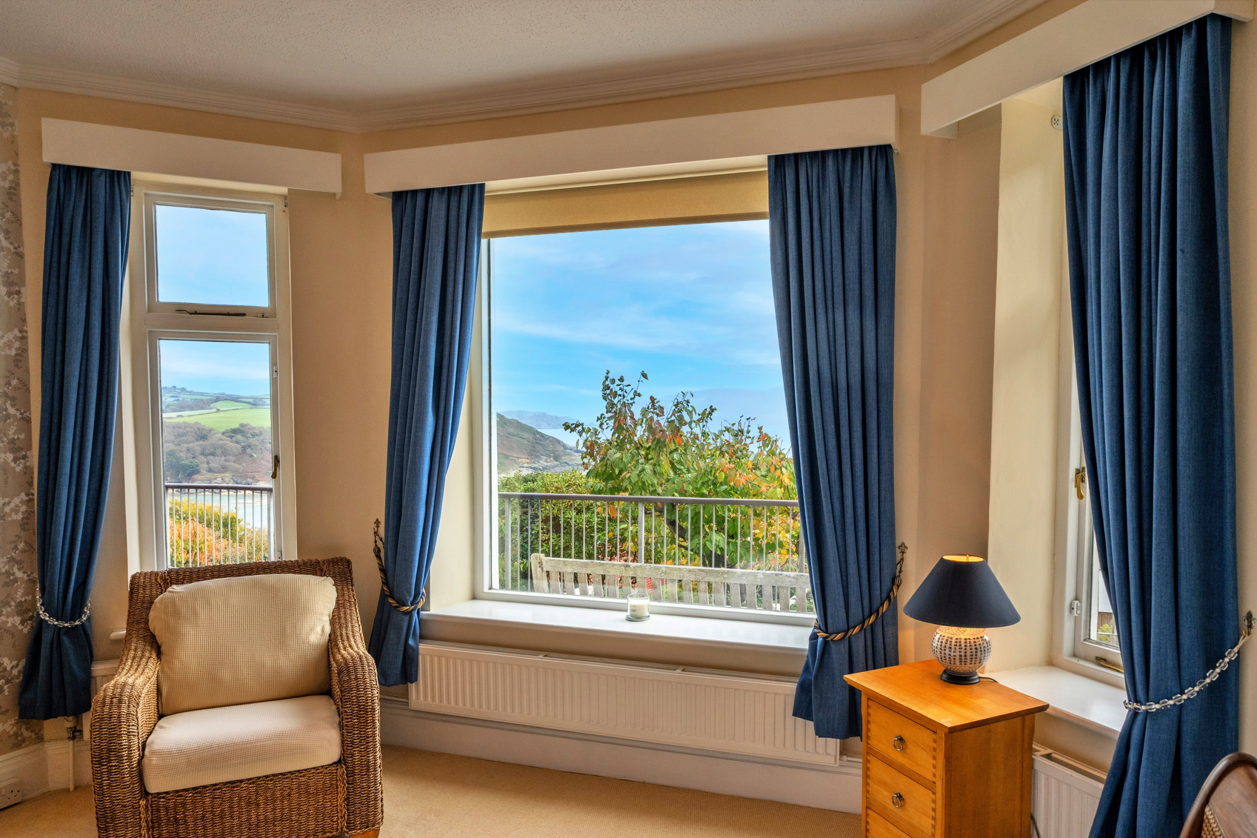 There are three double bedrooms, each with its own en-suite bathroom, both equipped with a bath, shower, and W/C for added comfort and convenience. From two of the bedrooms, guests can step out to enjoy the wrap-around balcony, offering uninterrupted views and the perfect spot to watch boats drift along the water or soak up the evening sun. The master bedroom provides stunning views across the estuary and surrounding coastline.