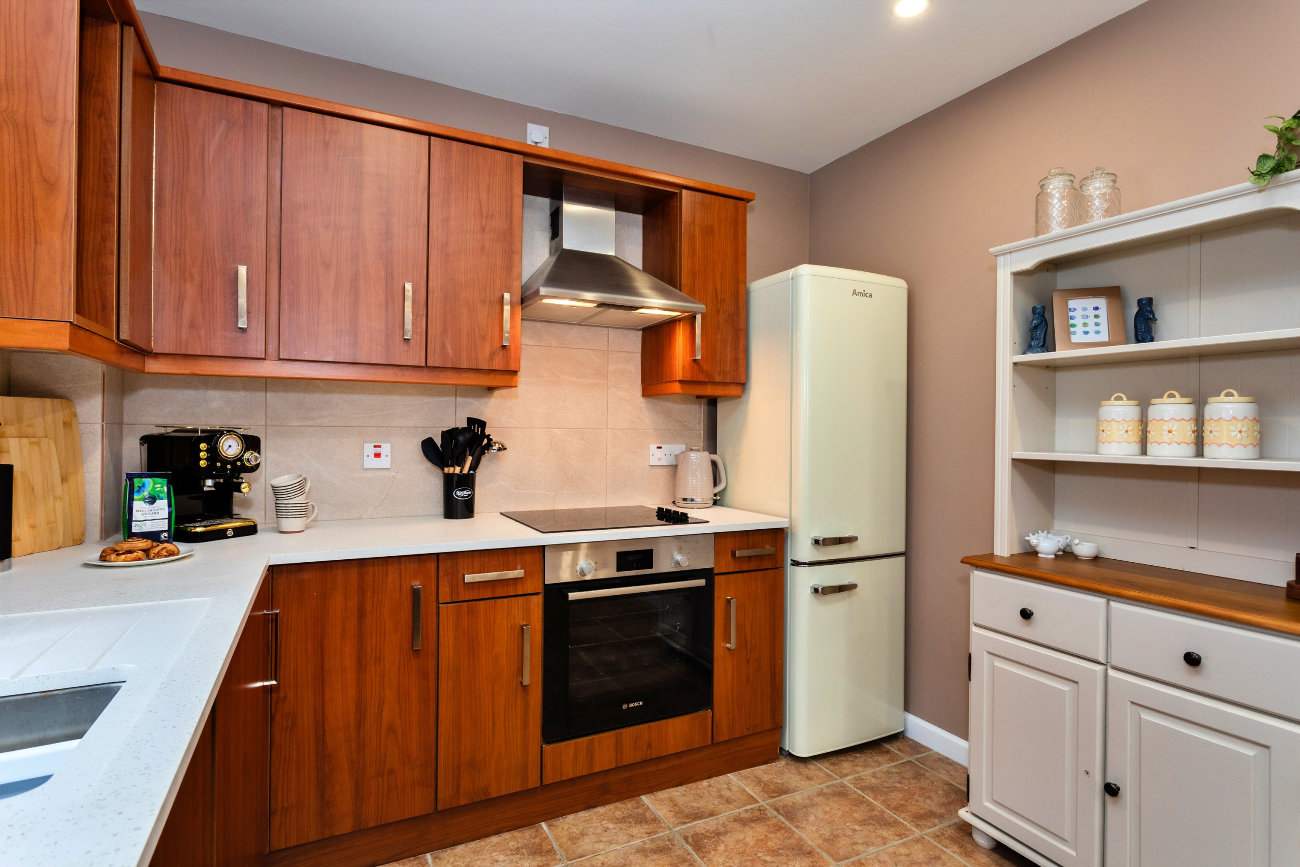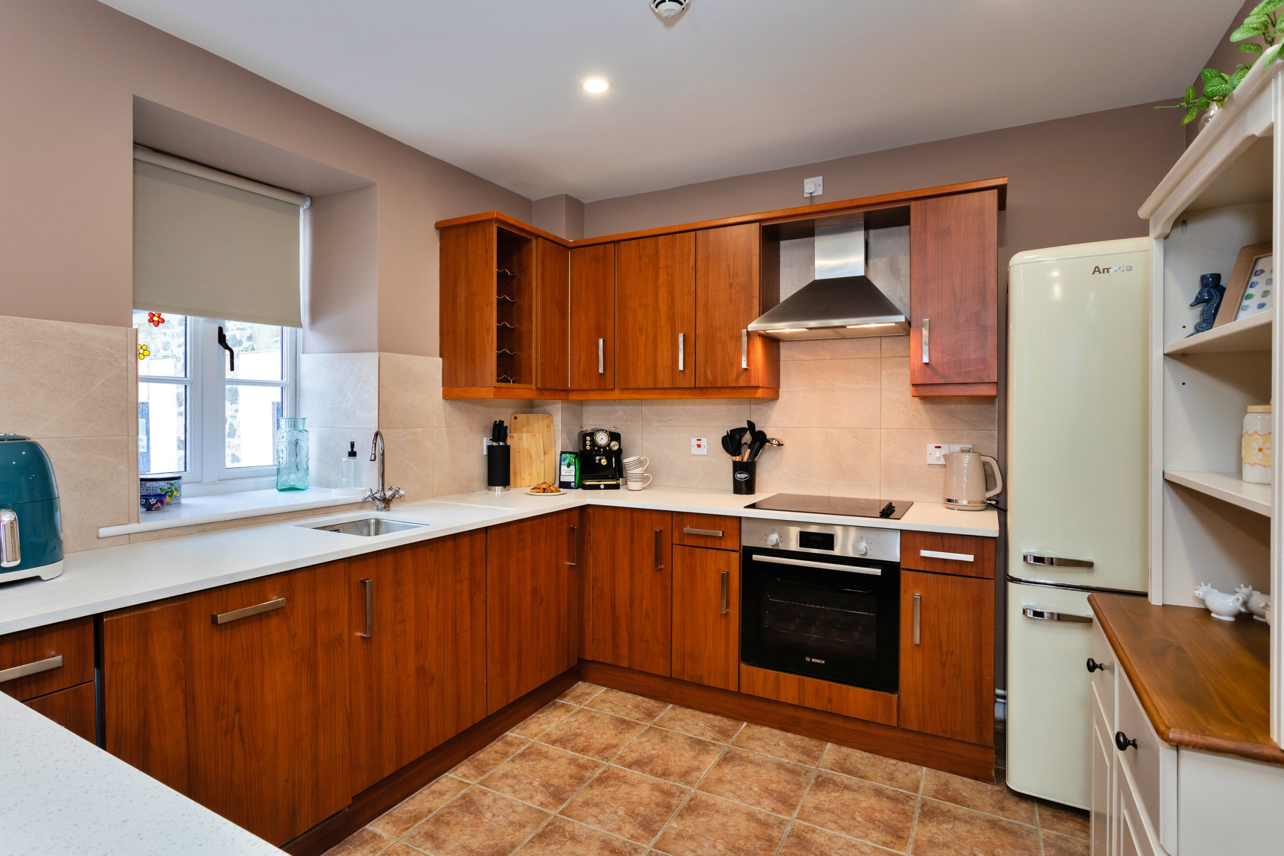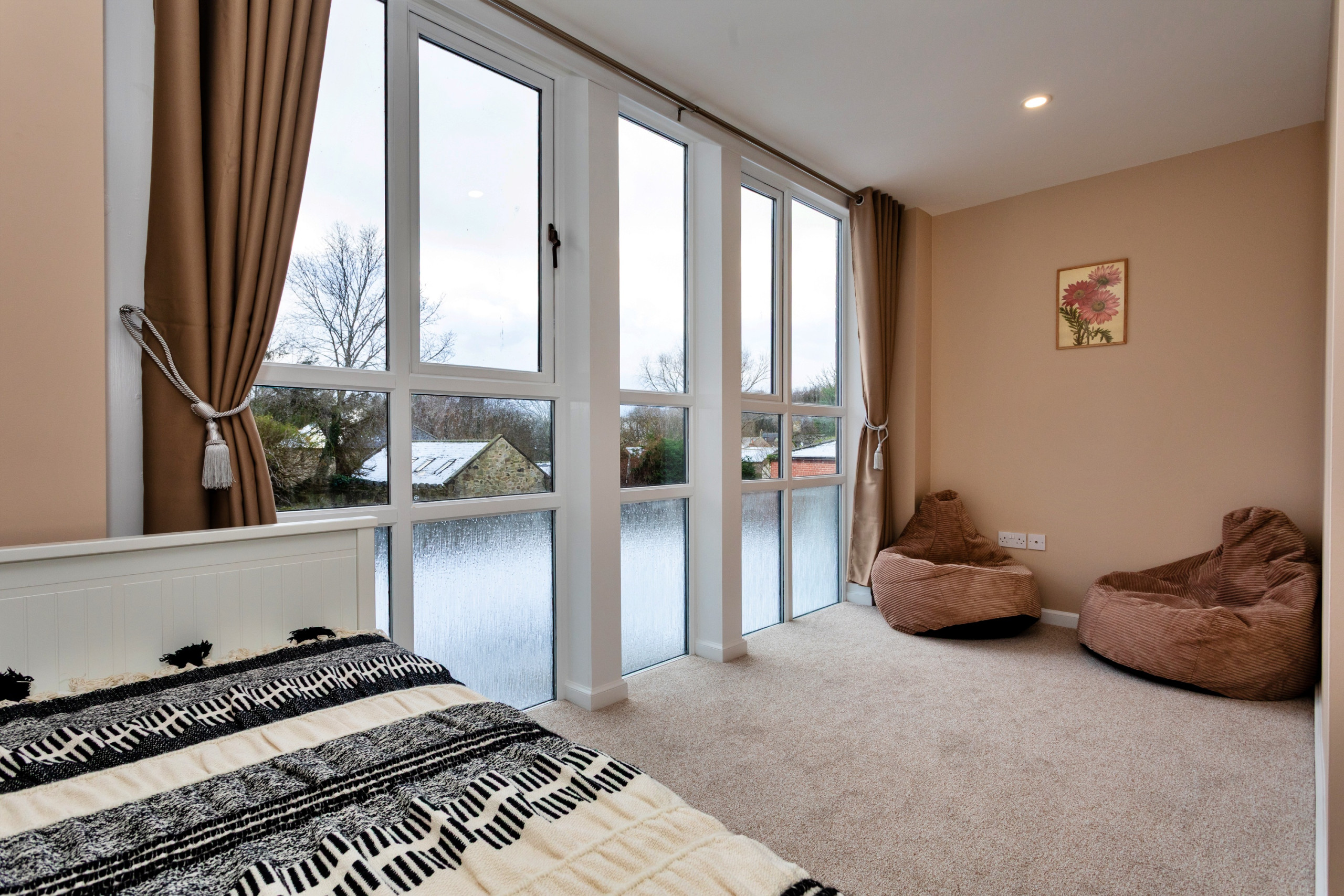 Housed in a former Norman grain mill, The Kiln beautifully blends historic character with contemporary design. The expansive, well-equipped kitchen supplies you with everything you would need for your stay. Just off of the kitchen is an open plan dining and living area. The apartment offers three generously sized bedrooms, providing comfortable and flexible accommodation for families or groups. The bathrooms are well appointed and finished to a high standard, including a downstairs wet room, ensuring both comfort and convenience for guests throughout their stay.
