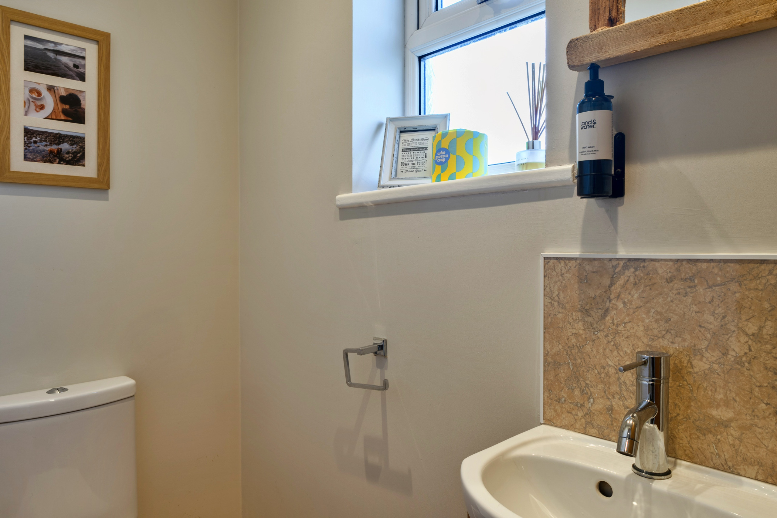 Following the hallway to the right from the entrance, you’ll find three stylish bedrooms: two king-size rooms (one with an en-suite shower room) and a twin bedroom, along with a spacious family bathroom. Throughout the cottage, you’ll find complimentary luxury Cornish-made toiletries including hand wash, body wash, shampoo, and conditioner — all presented in eco-friendly refillable bottles.