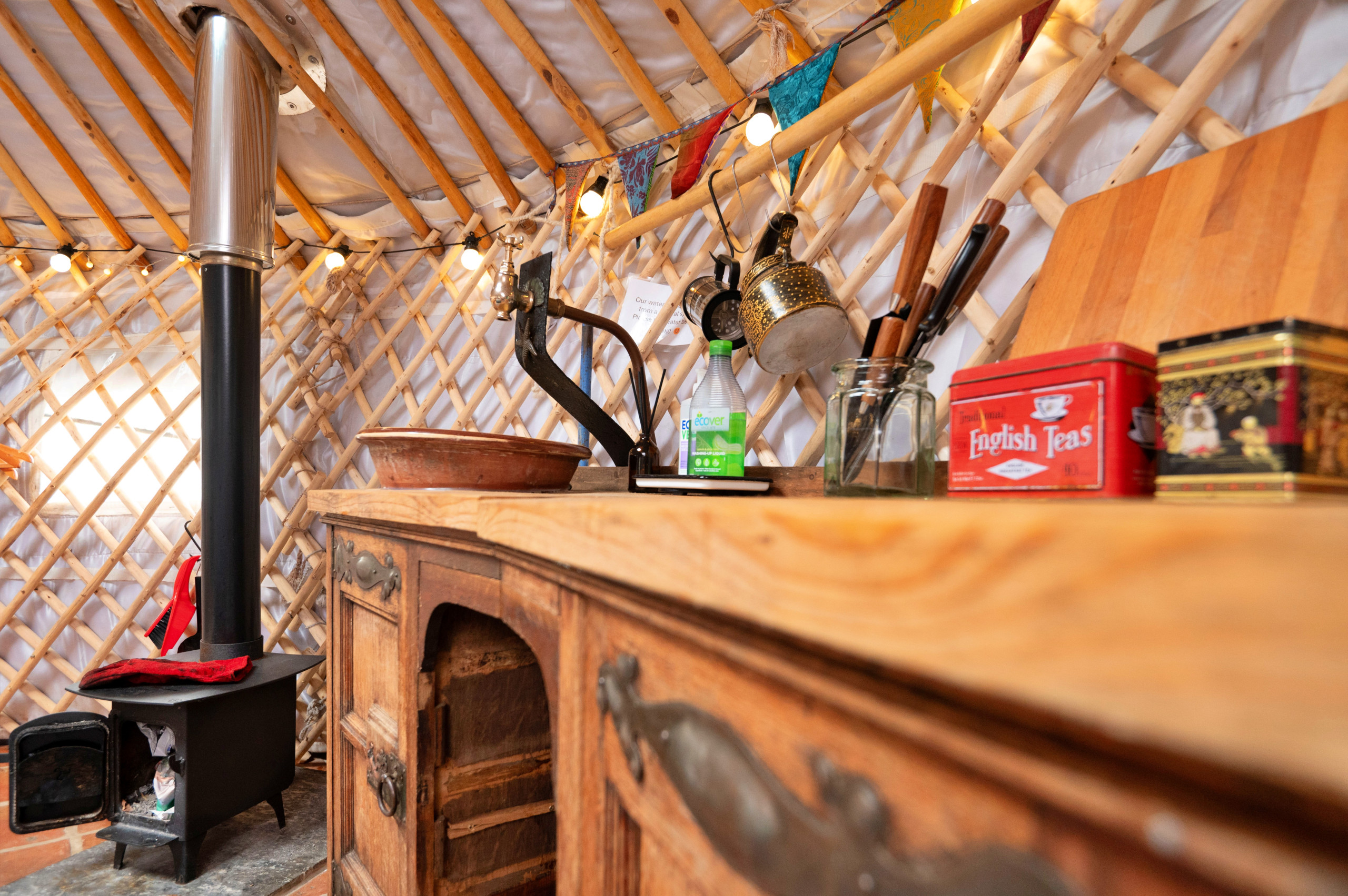 HEATING – The only source of heat in the yurt is our cosy log burner. It’s essential for the best experience throughout winter! Please do remember to bring your own logs and kindling with you.