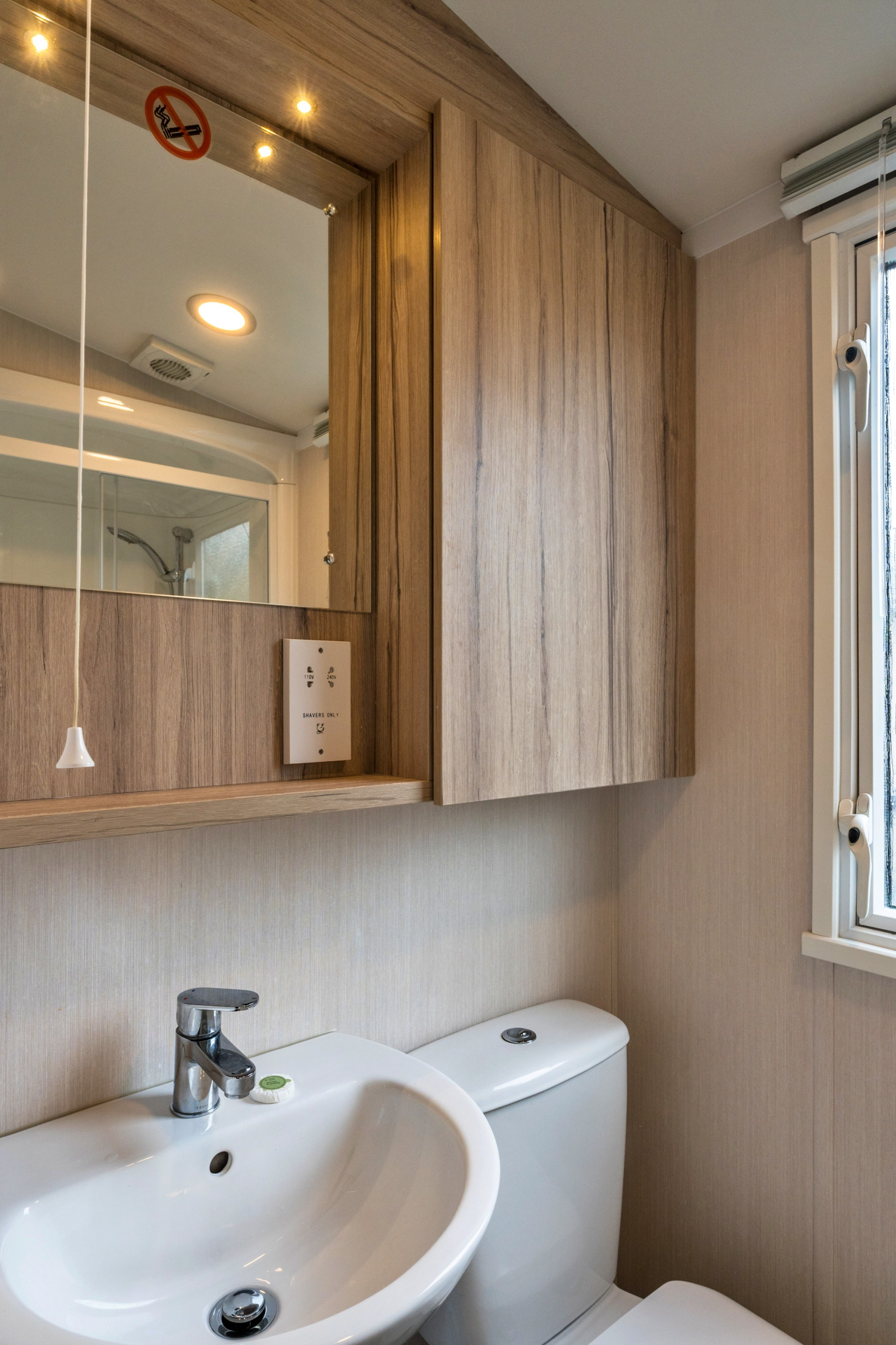 The lodge comfortably sleeps six guests across three bedrooms, with one double room and two twin rooms, making it ideal for families or groups. There is a modern family shower room, along with a separate WC cloakroom, providing added convenience for busy mornings and evenings.