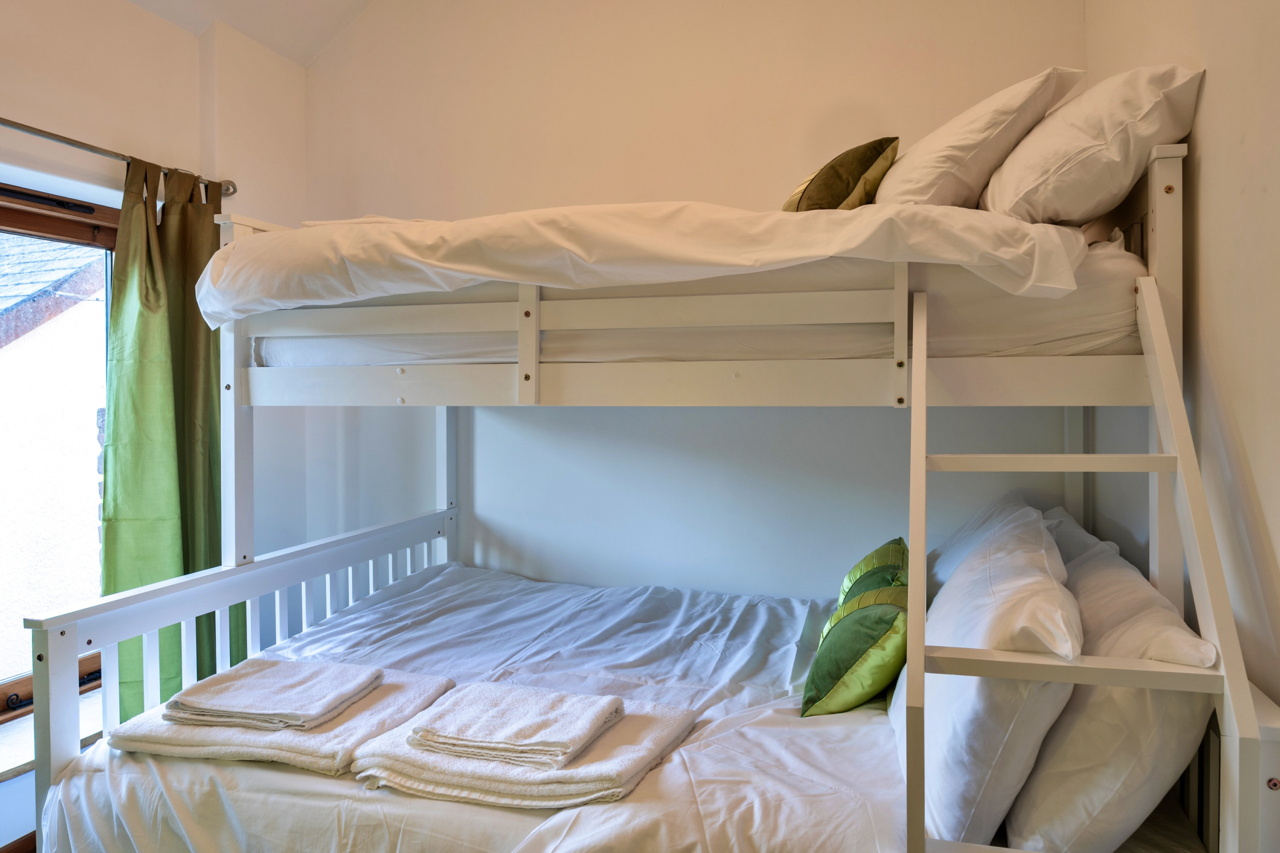At the end of the day, Lime Cottage offers two bedrooms. The king-size room features an en-suite bathroom with a bath and shower over. The second bedroom is a triple adult sized bunk room with a double below and single above, also benefiting from an en-suite with a walk-in shower, making it suitable for varied group arrangements.