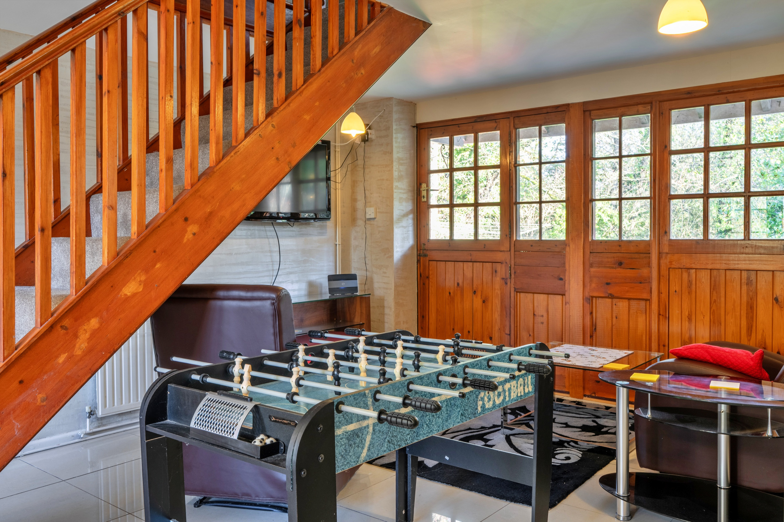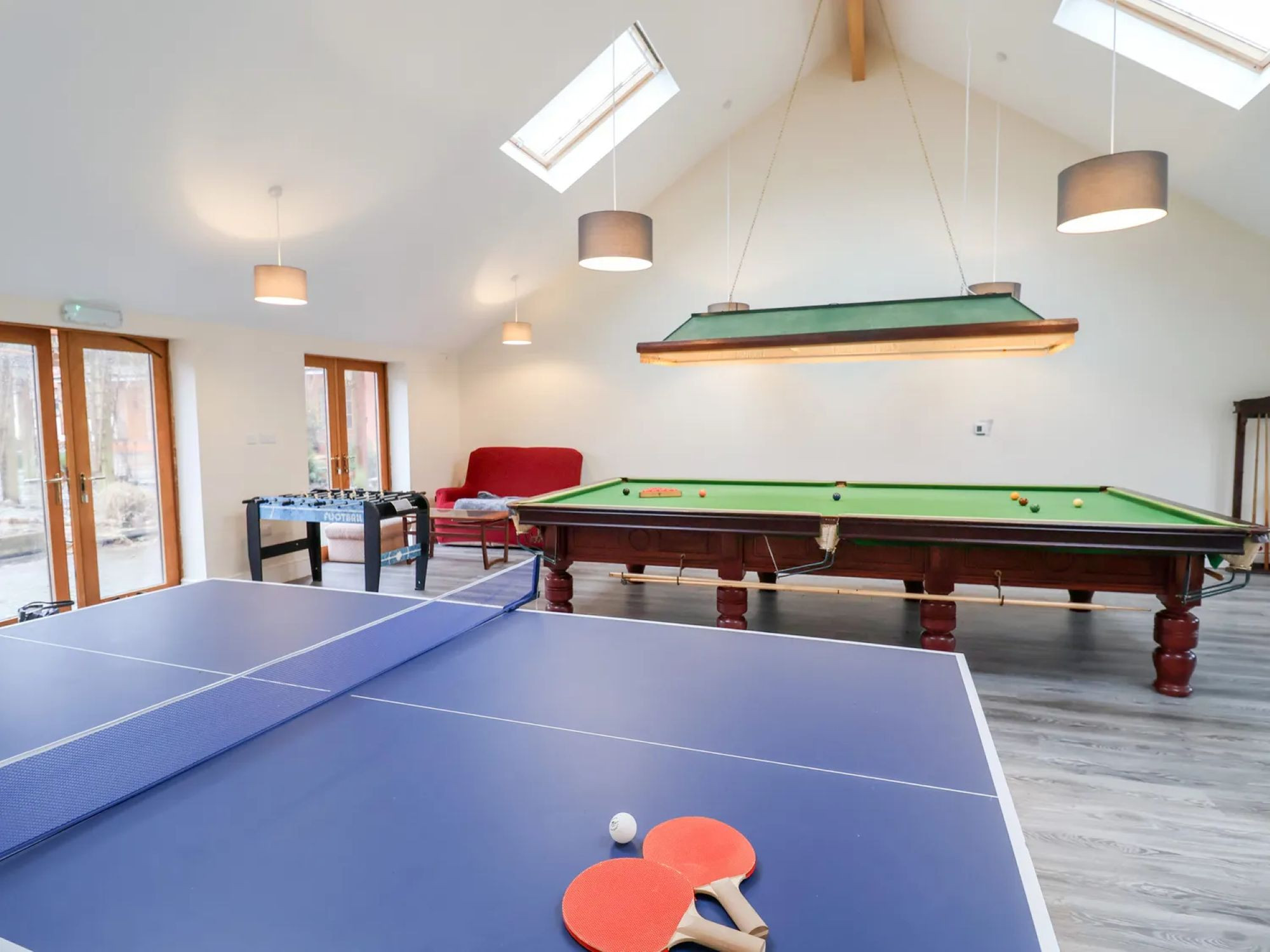 The external games room is shared among the six cottages and is equipped with a pool table, foosball table and full-size table tennis table.