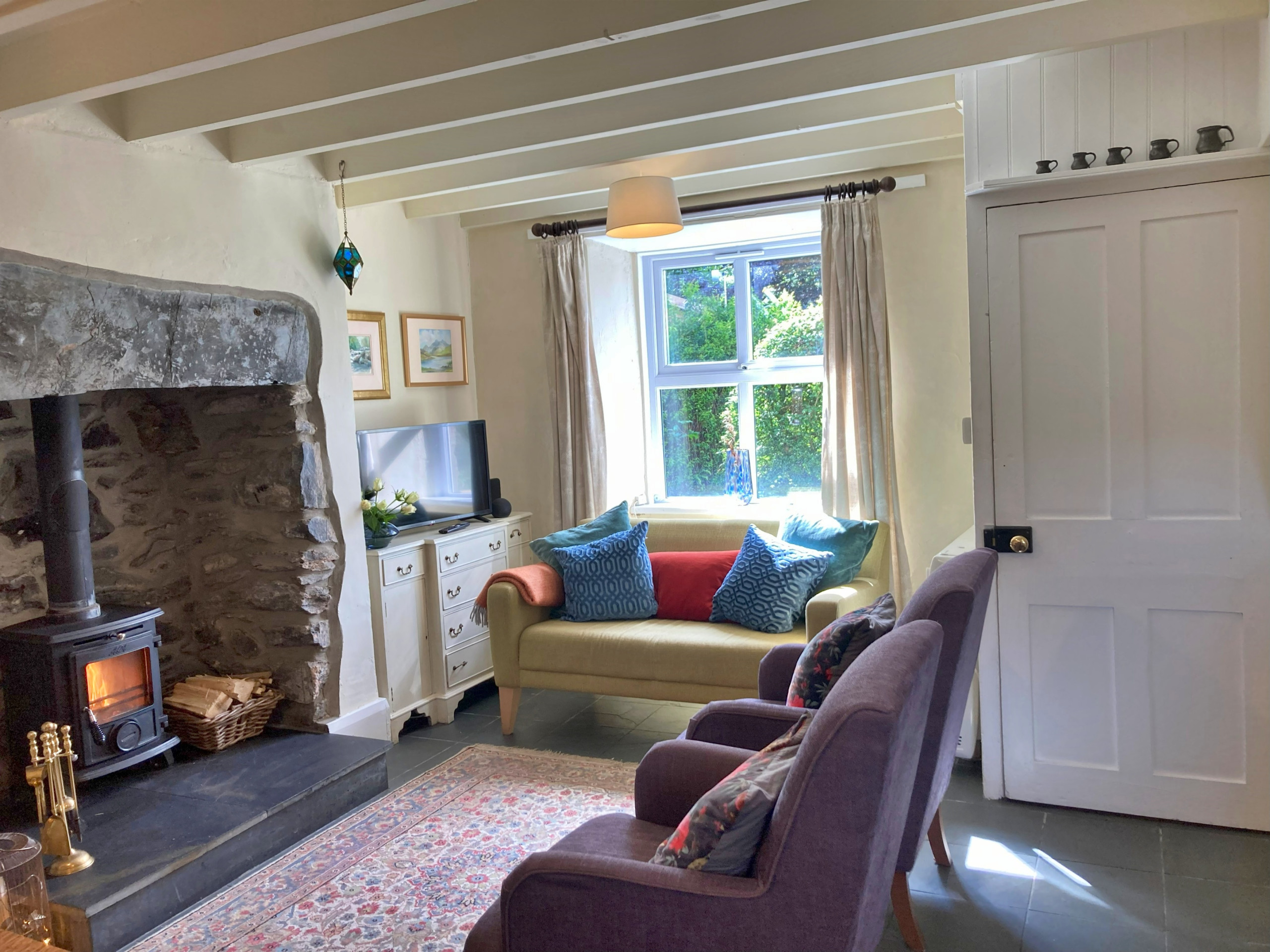 There is private parking for two cars, and a shop and pub are just a ten-minute walk away. Please note that, due to the age of the cottage, the original staircase is steep. A starter pack for the multi-fuel stove is included in the rent.