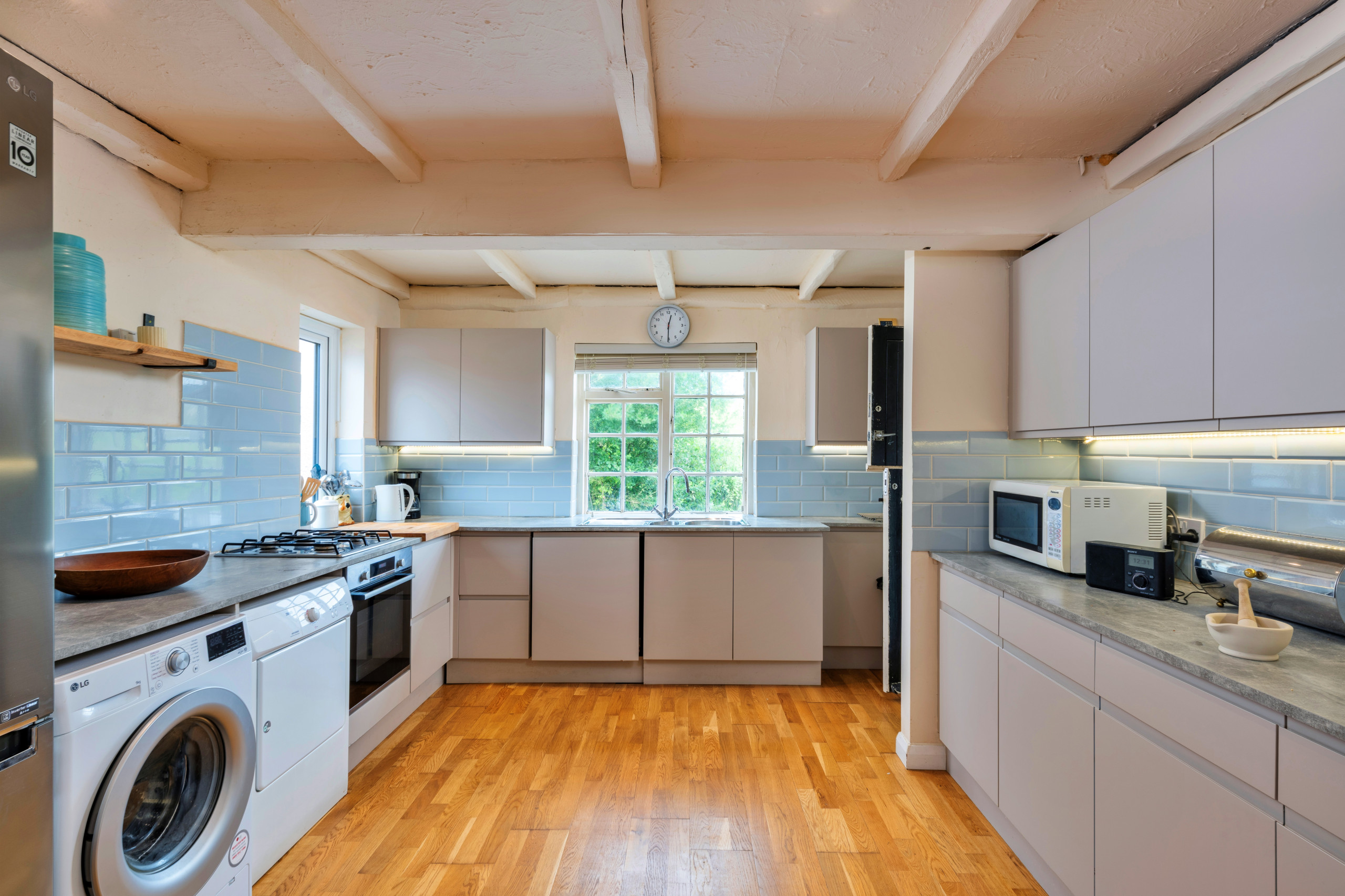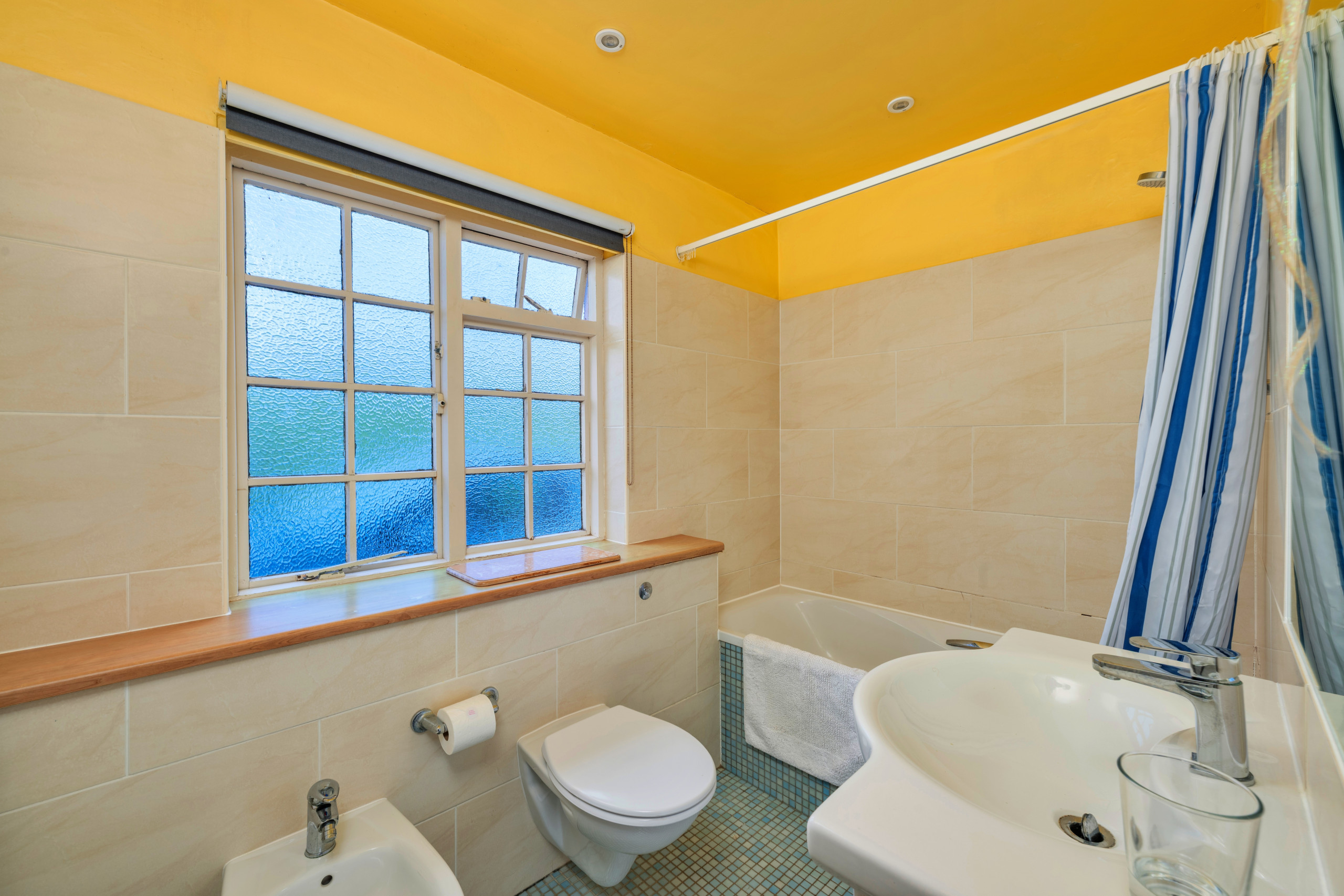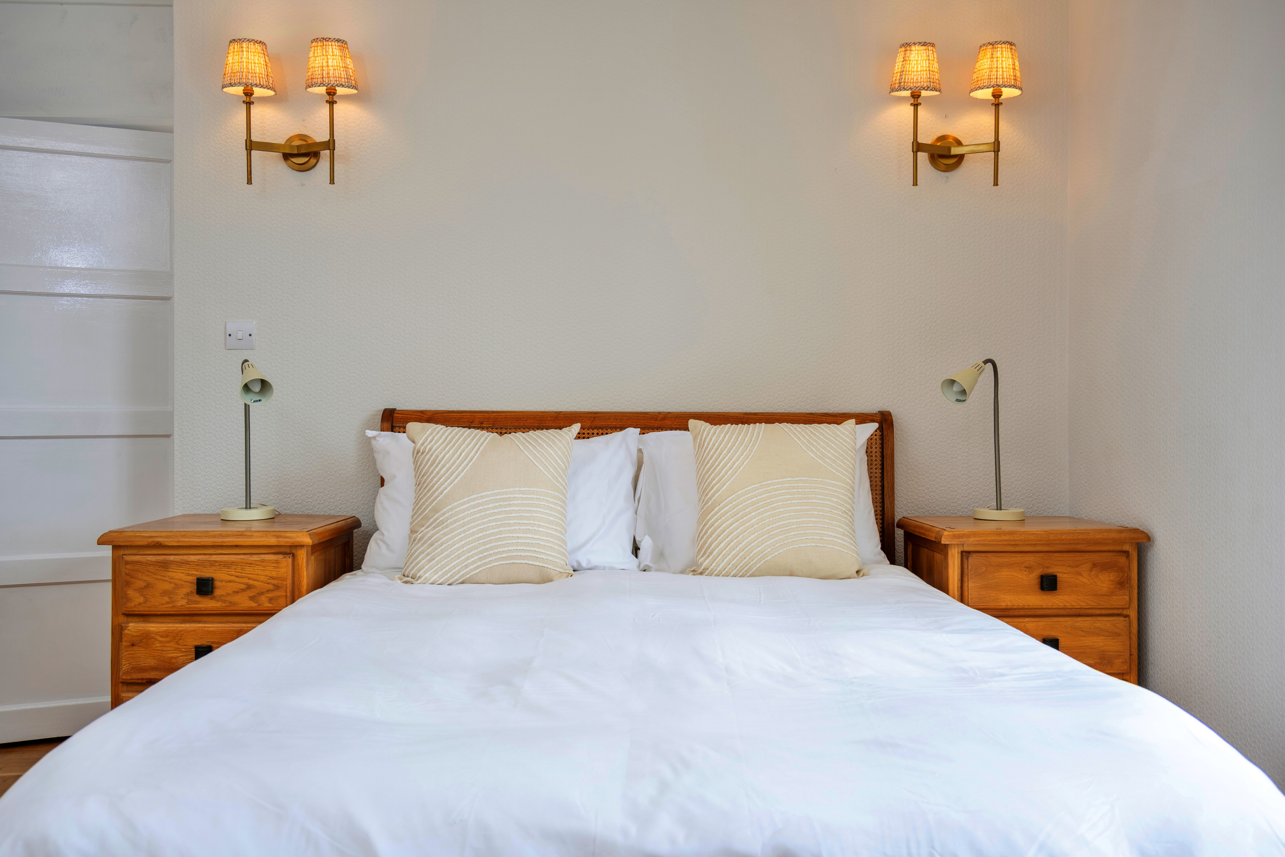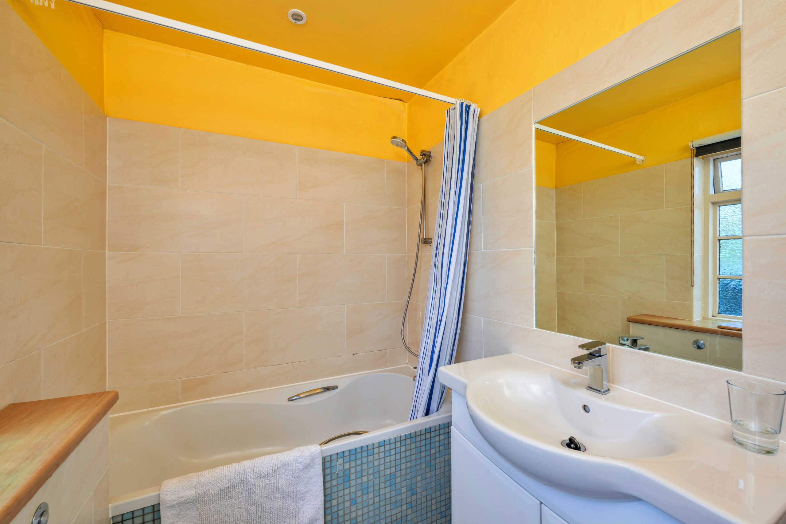 Set on one level, the house has one king bedroom, with en-suite and three twin rooms. The ensuite includes a walk-in shower, while the main bathroom features a bath with a shower over. The kitchen is equipped with a dishwasher, fridge/freezer, gas hob, electric oven, washing machine and dryer. The sitting room opens through double doors onto a bay area with wide coastal views and a log burner.