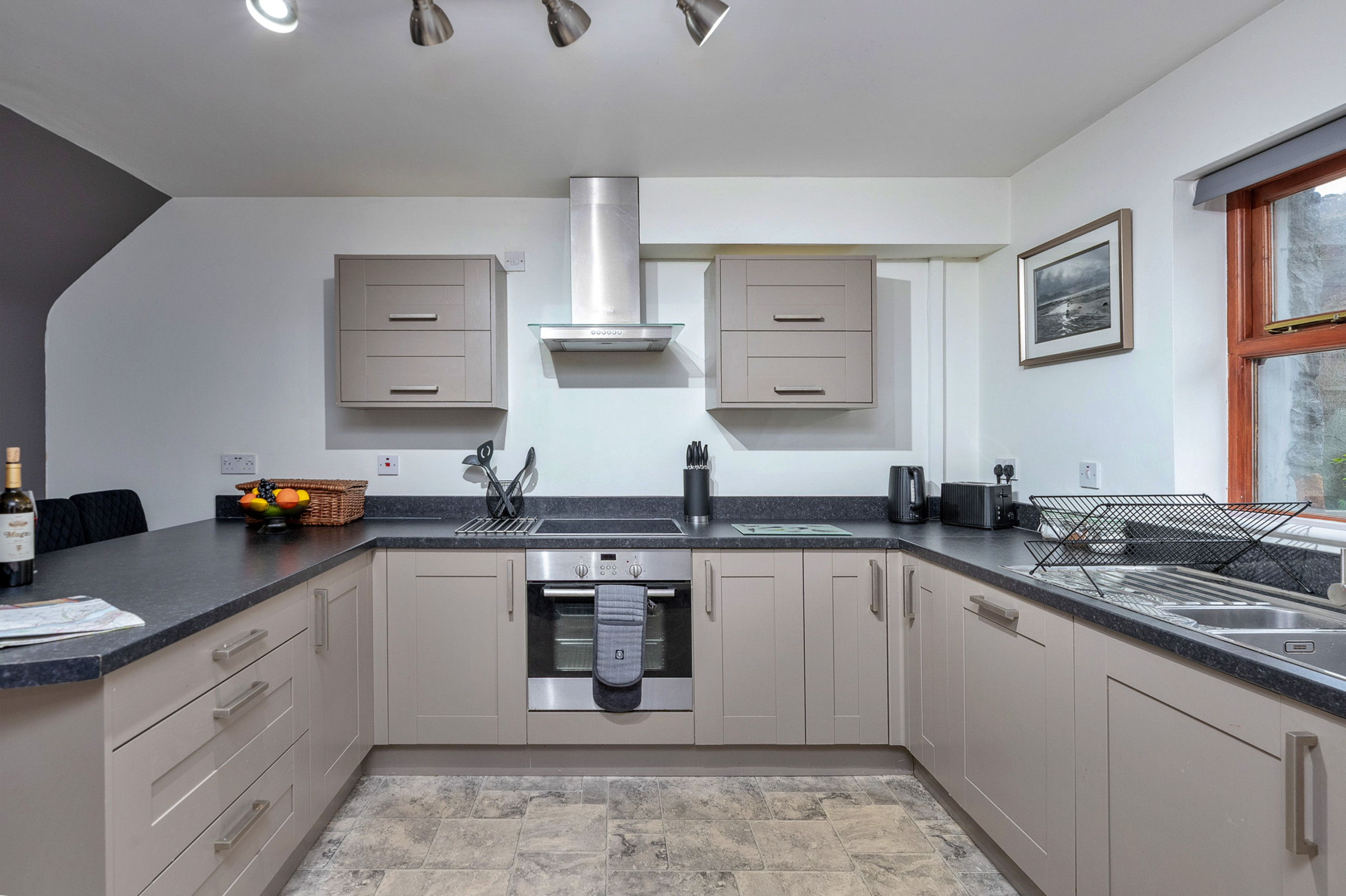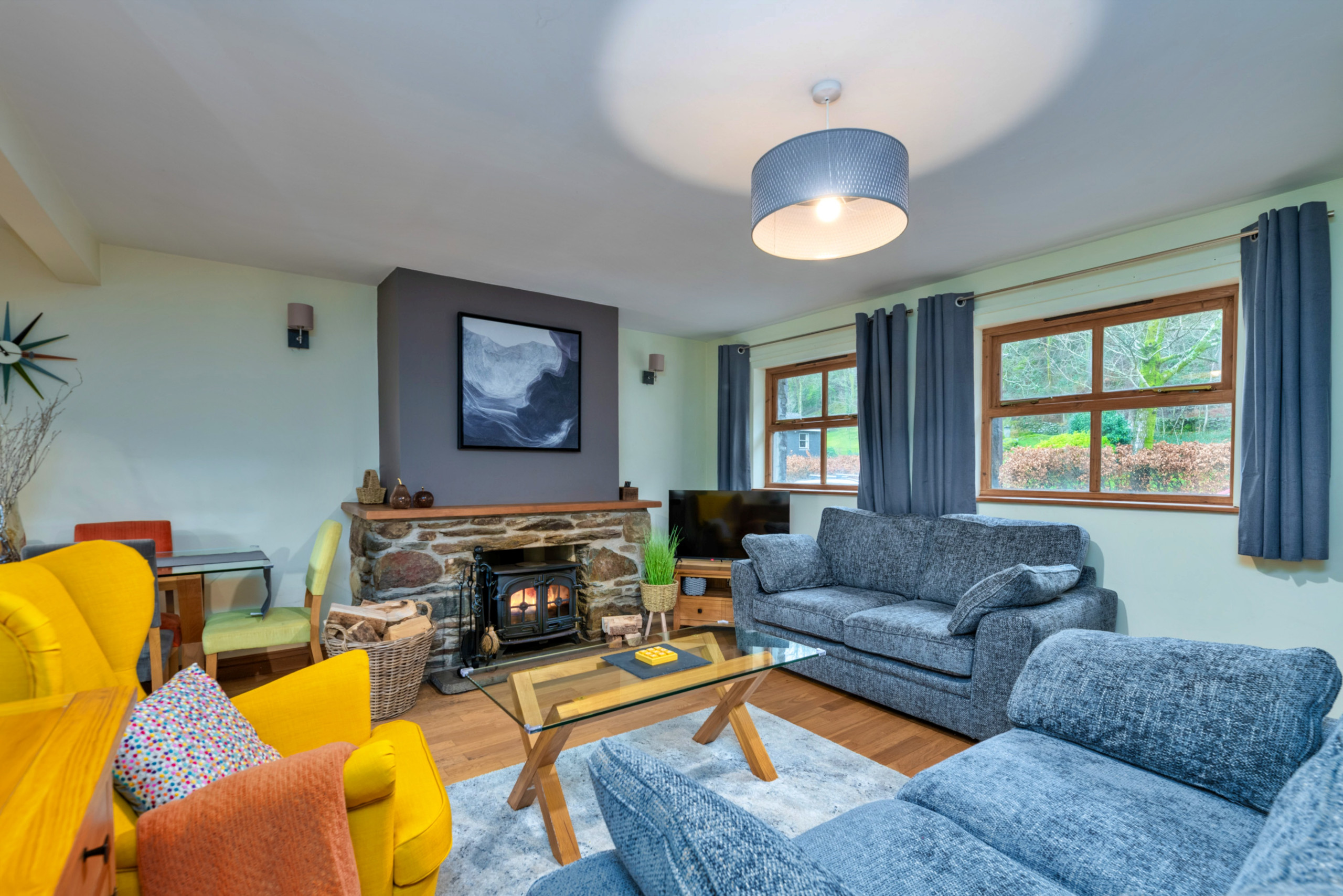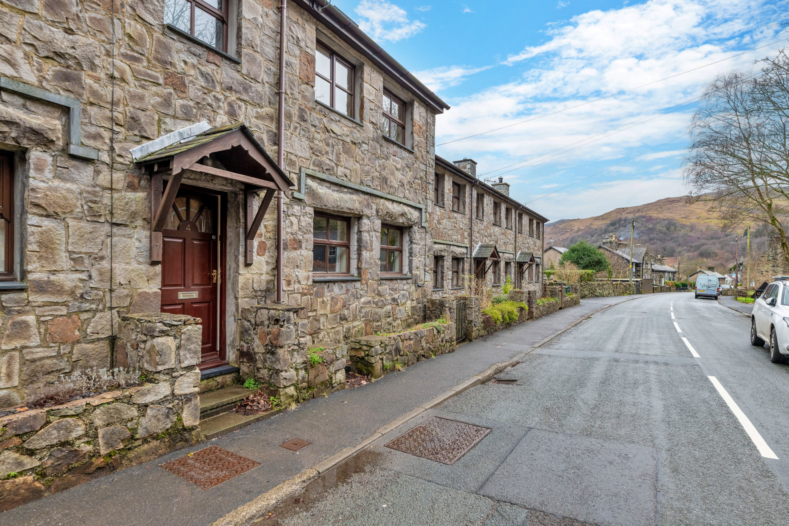 Inside, the welcoming sitting room features an exposed stone fireplace with a multi-fuel stove, creating a warm and inviting space to unwind after a day spent exploring the surrounding mountains and walking trails. The kitchen is well equipped for preparing home-cooked meals to share together long into the evening. Upstairs, the cottage offers three attractively furnished bedrooms. The master bedroom benefits from a modern en-suite shower room, while the remaining two bedrooms enjoy lovely views over the river. A family bathroom completes the accommodation.