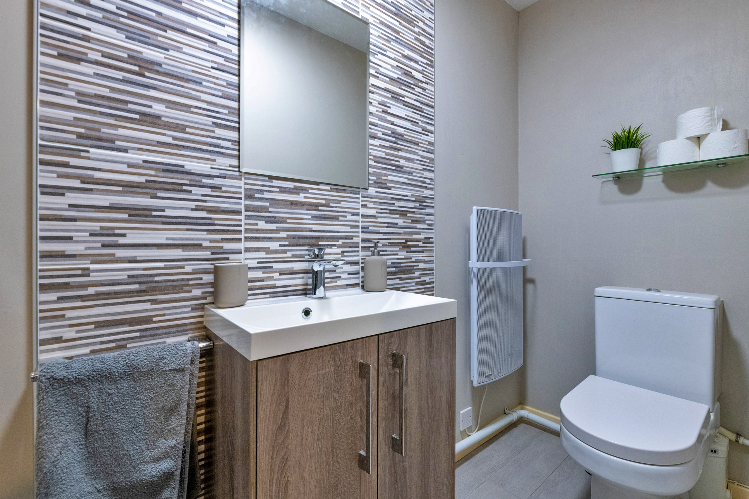 Outside, guests can make the most of the rear patio and lawned garden, furnished with a table and chairs — a wonderful place to relax on warm summer evenings while listening to the gentle flow of the Glaslyn River. Please make sure children are monitored at all times due to the river at the back of the property.