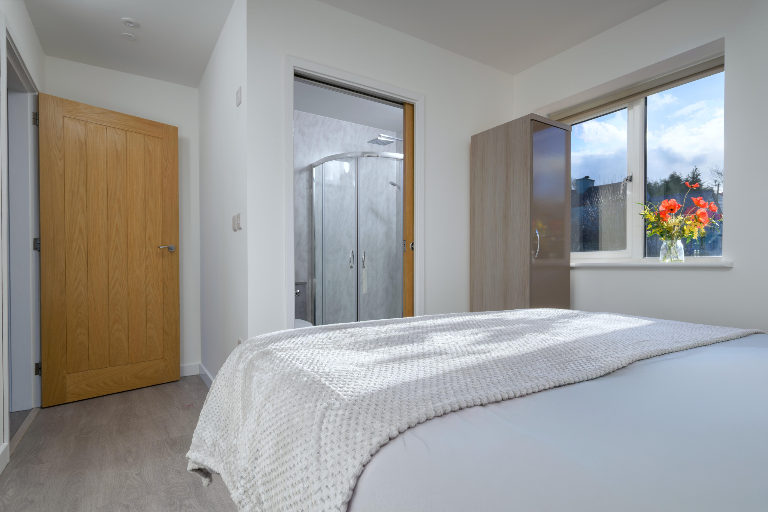 The cottage offers three inviting bedrooms. The main bedroom features a king-size bed and a stylish en suite shower room. Alongside a second king-size bedroom, and the third bedroom arranged as a twin. A family bathroom with a bath and shower over completes the accommodation.