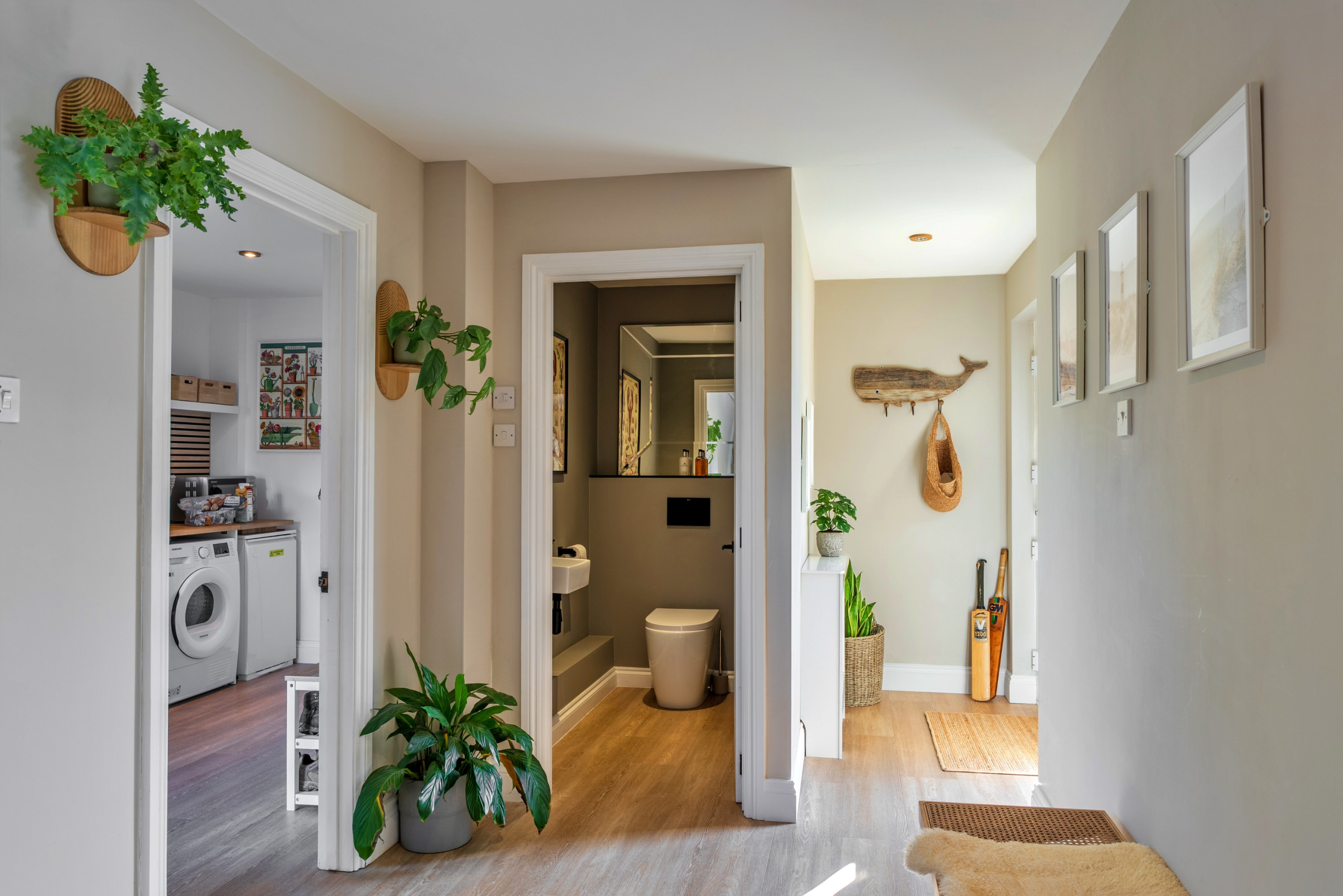 The fully equipped kitchen provides everything needed for an enjoyable stay, whether you're preparing a quick breakfast or a relaxed evening meal. After a day exploring the Cornish coast and countryside, guests can unwind in the living area, complete with a fireplace, perfect for relaxing on cooler evenings. Guests will find a separate utility room with a washing machine and tumble drier.