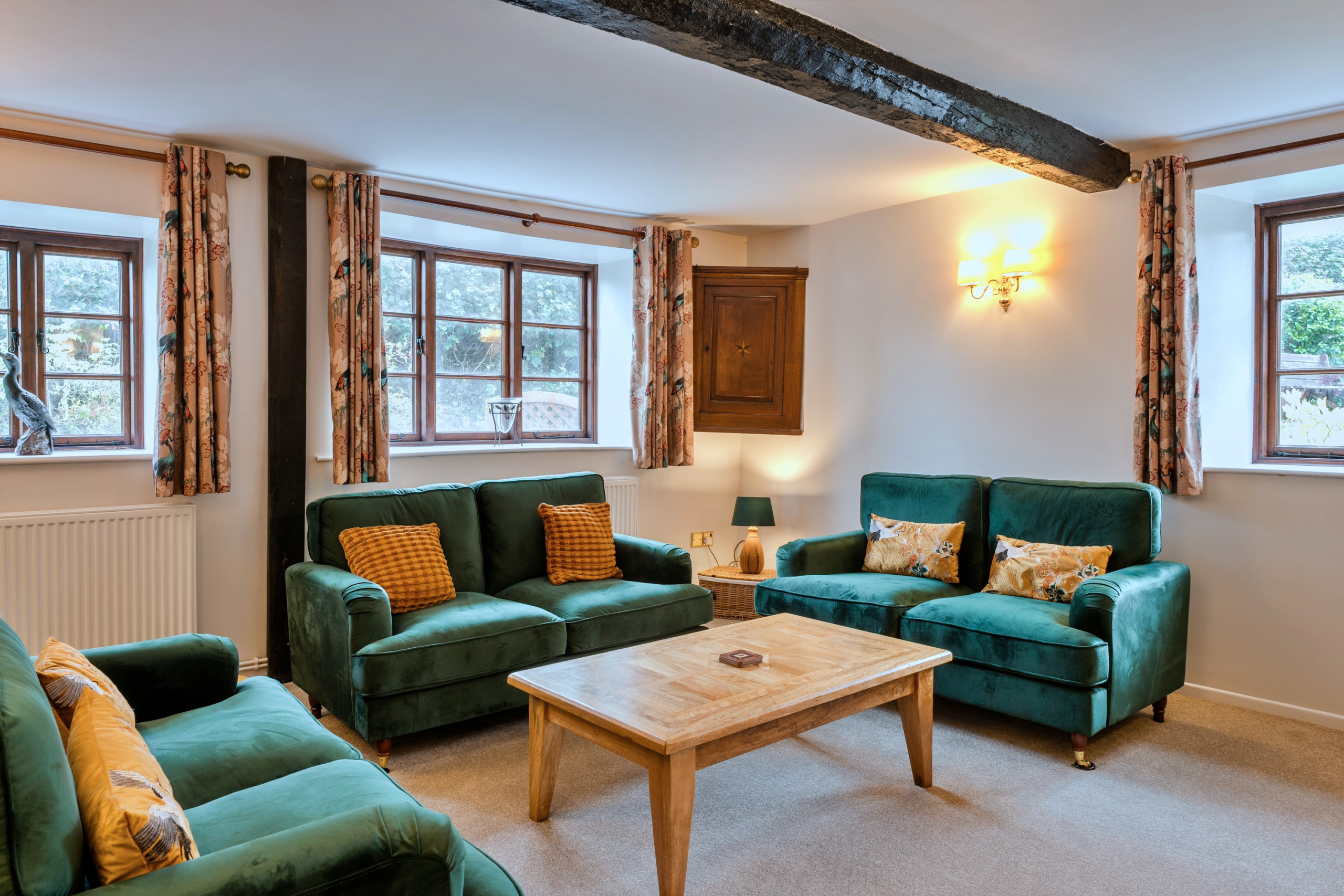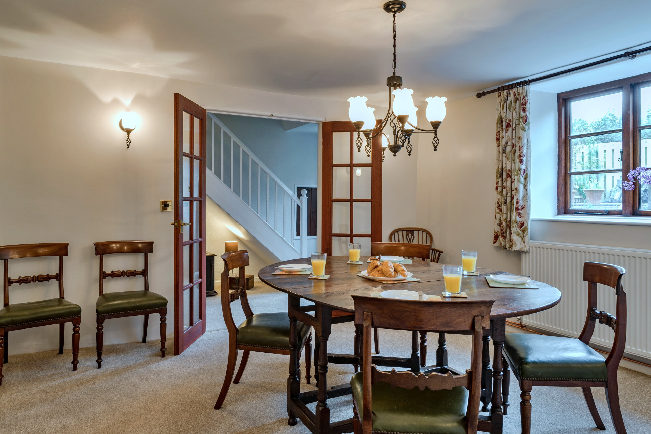 The cottage comfortably accommodates up to seven guests with two generous king-size bedrooms, a room with bunk beds ideal for younger visitors, and a comfortable single room. There are two full bathrooms and an additional WC, along with family essentials such as a highchair and travel cot, making it easy to enjoy a holiday with guests of all ages.