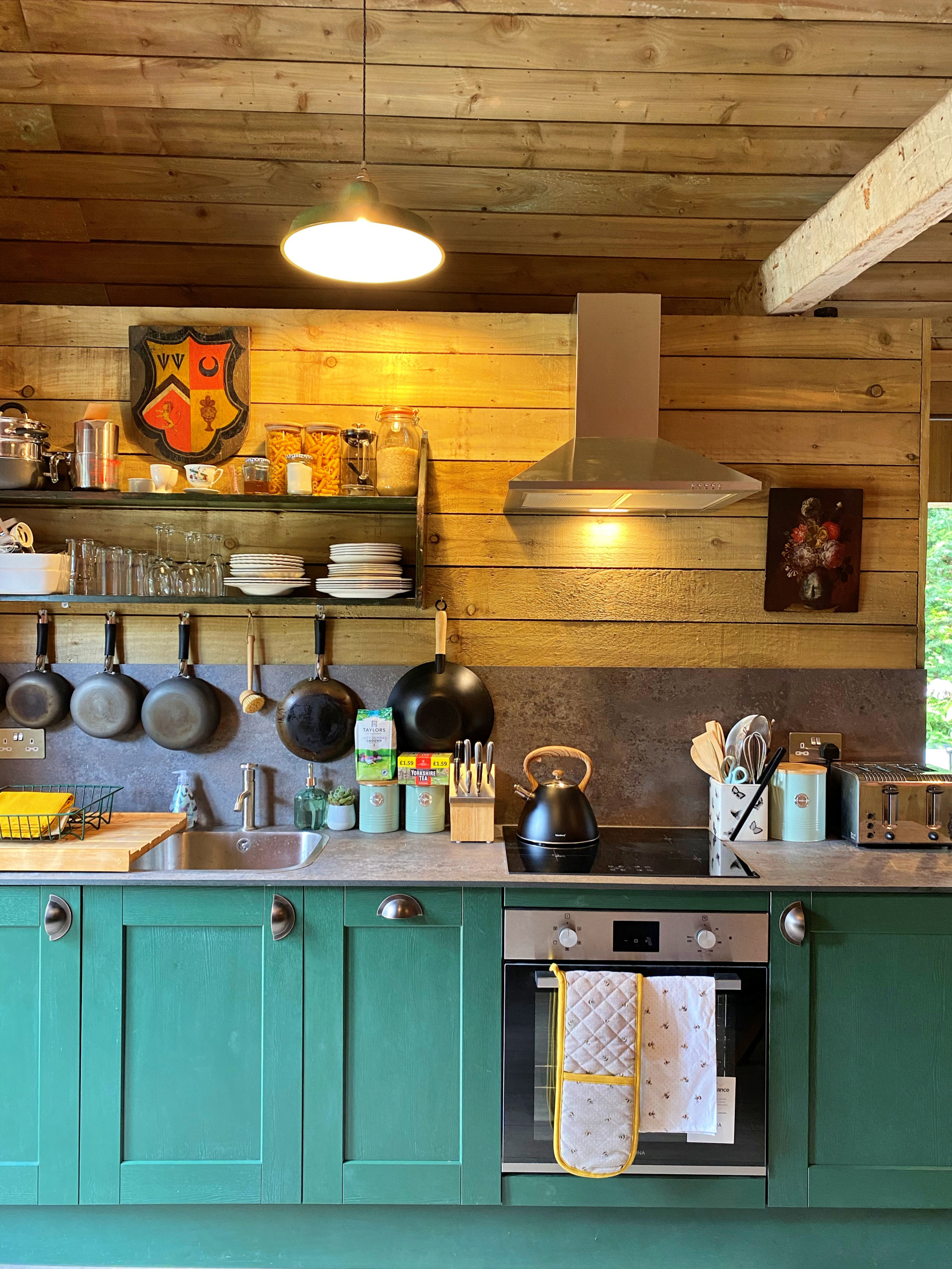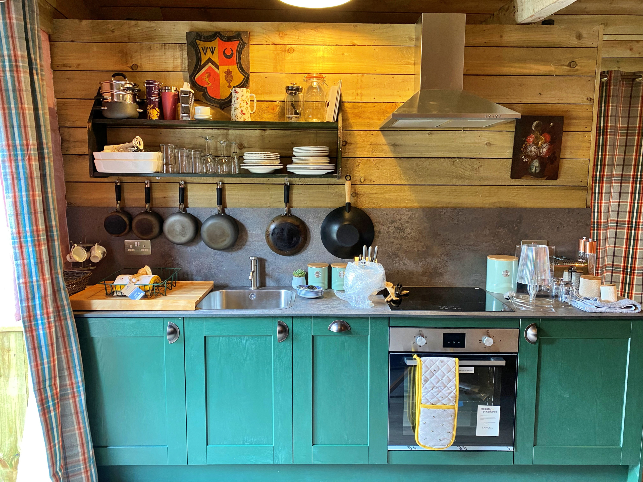 Inside, the open-plan living area feels warm and welcoming, complete with a wood burner and large patio doors that fill the space with natural light and lead out to a private patio garden. It’s an ideal spot for relaxing with coffee in the morning or enjoying an evening after a day exploring. The well-appointed kitchen blends modern convenience with a homely feel, making it easy to settle in and enjoy your stay at your own pace. Upon your arrival you will find a welcome basket kindly provided by the owner. The Potting Shed is also accessible and step free between the bedroom, bathroom & living