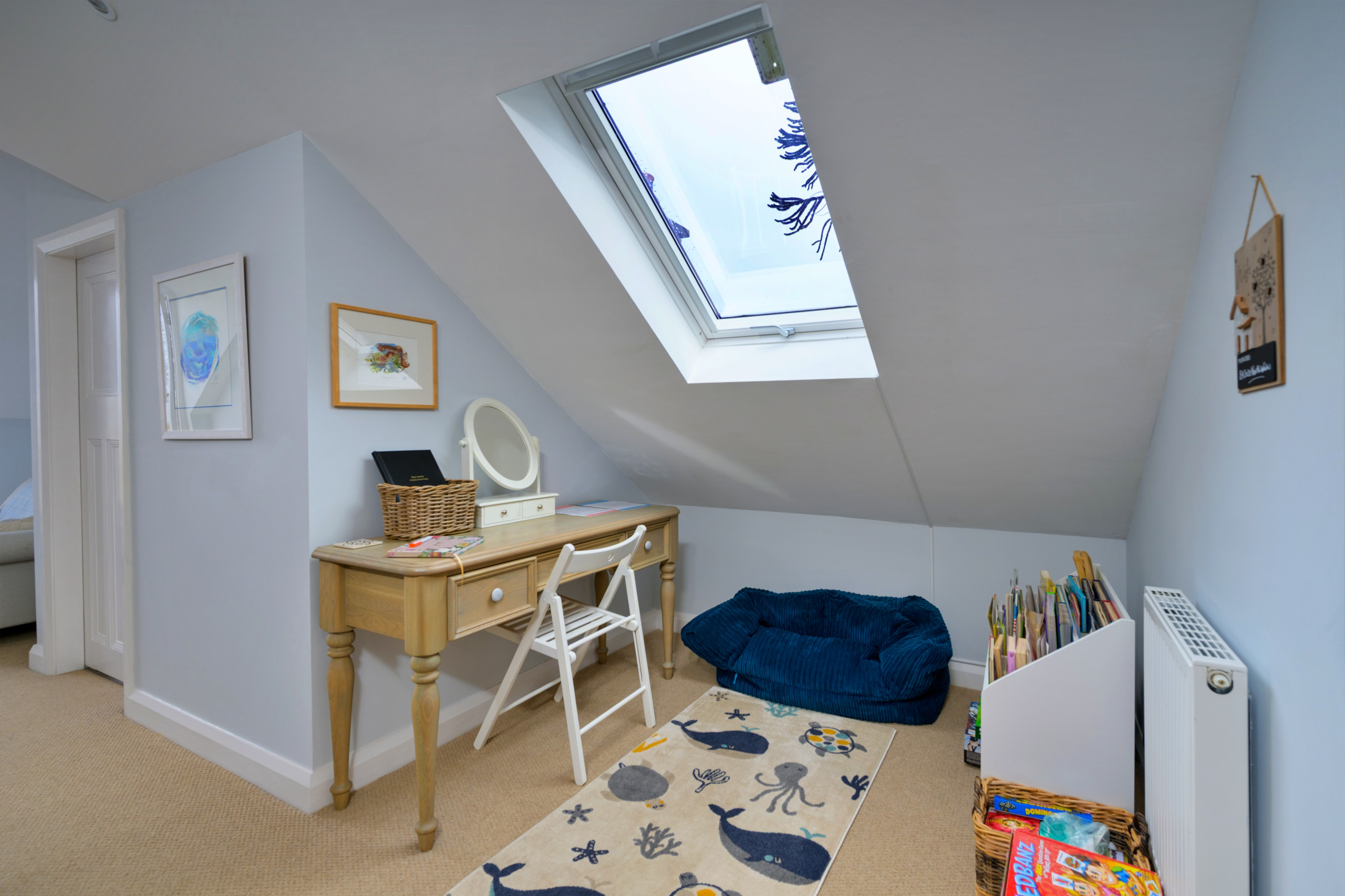 Upstairs, beneath the characterful sloping ceilings, you’ll find two beautifully appointed bedrooms — a king-size and a welcoming twin — both enjoying spectacular views stretching across the castle, the town, the coastline and the distant Cambrian Mountains. Step out onto the balcony with your morning coffee as the sun rises over the landscape, while children relax in the cosy reading nook with a good book. Downstairs, two further bedrooms — another king and a twin — echo the property’s Victorian elegance, offering bright and restful spaces for every member of the group.