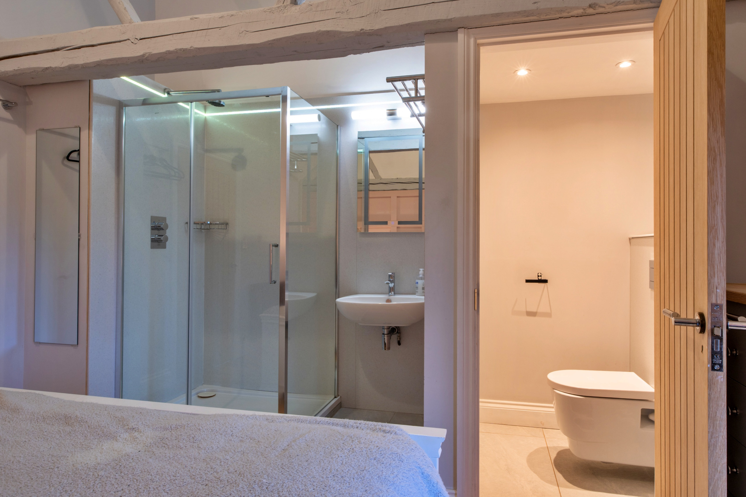 The well-equipped kitchen includes an electric oven and induction hob, fridge/freezer, dishwasher, washing machine and microwave, making it easy to prepare meals during your stay. Opposite, the lounge area offers comfortable seating and an internet only TV for relaxed evenings in. There are two beautifully presented bedrooms: a stylish king-size bedroom with an en-suite shower open to the room and a separate WC, and a second king-size zip-and-link bedroom (which can be made up as a twin on request) with its own en-suite shower room and WC.