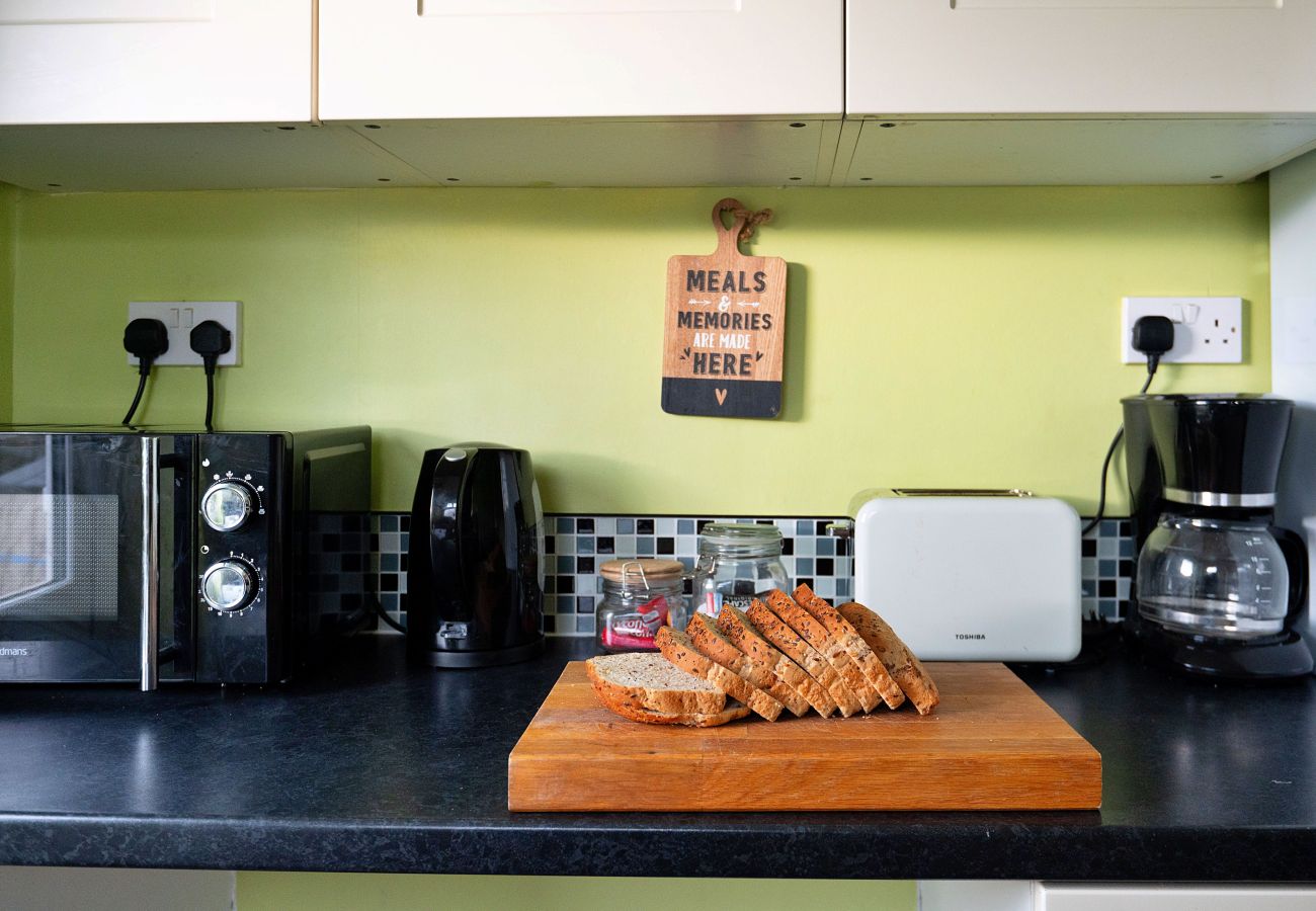 The living/dining area is equipped with a large Smart TV and a wood burner, alongside a selection of family games. Logs for the wood burner are available locally. The kitchen is fully equipped with everything you need, including an electric oven, hob, microwave, fridge/freezer, and washing machine. There are two comfortable bedrooms: one with a double bed and the other with bunk beds, making it a great option for families. The bathroom features a bath with a shower overhead.