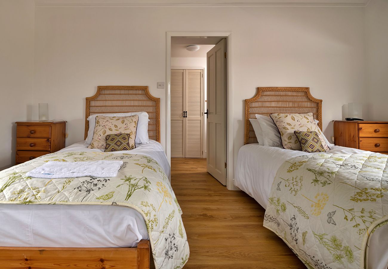 The property offers three spacious bedrooms: a luxurious king-sized room, a super king room and a twin room, each with beautifully tiled en-suite bathrooms. The bedrooms are equipped with flat-screen smart TVs, ideal for enjoying leisurely mornings.