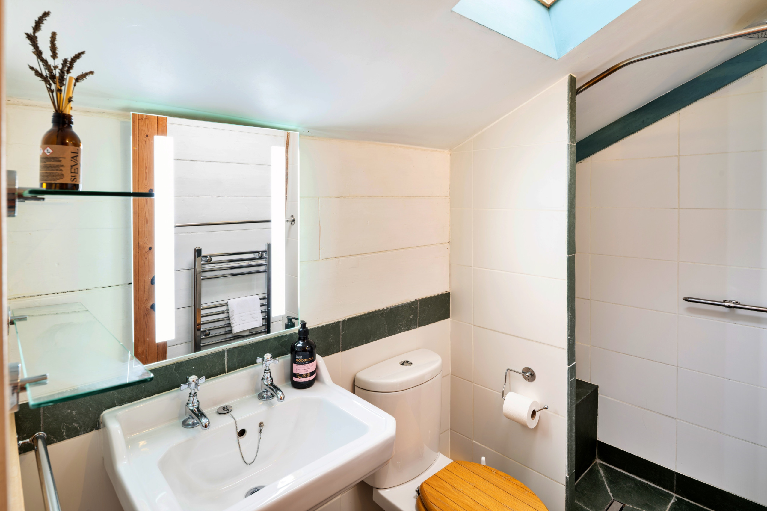 Outside, Little Roost benefits from private parking in an adjacent carport, complete with an EV charger. Above the cottage is a delightful private roof garden with a table, chairs and sun lounger — perfect for outdoor dining or relaxing in the sun, surrounded by scented flowers and herbs in the summer months.