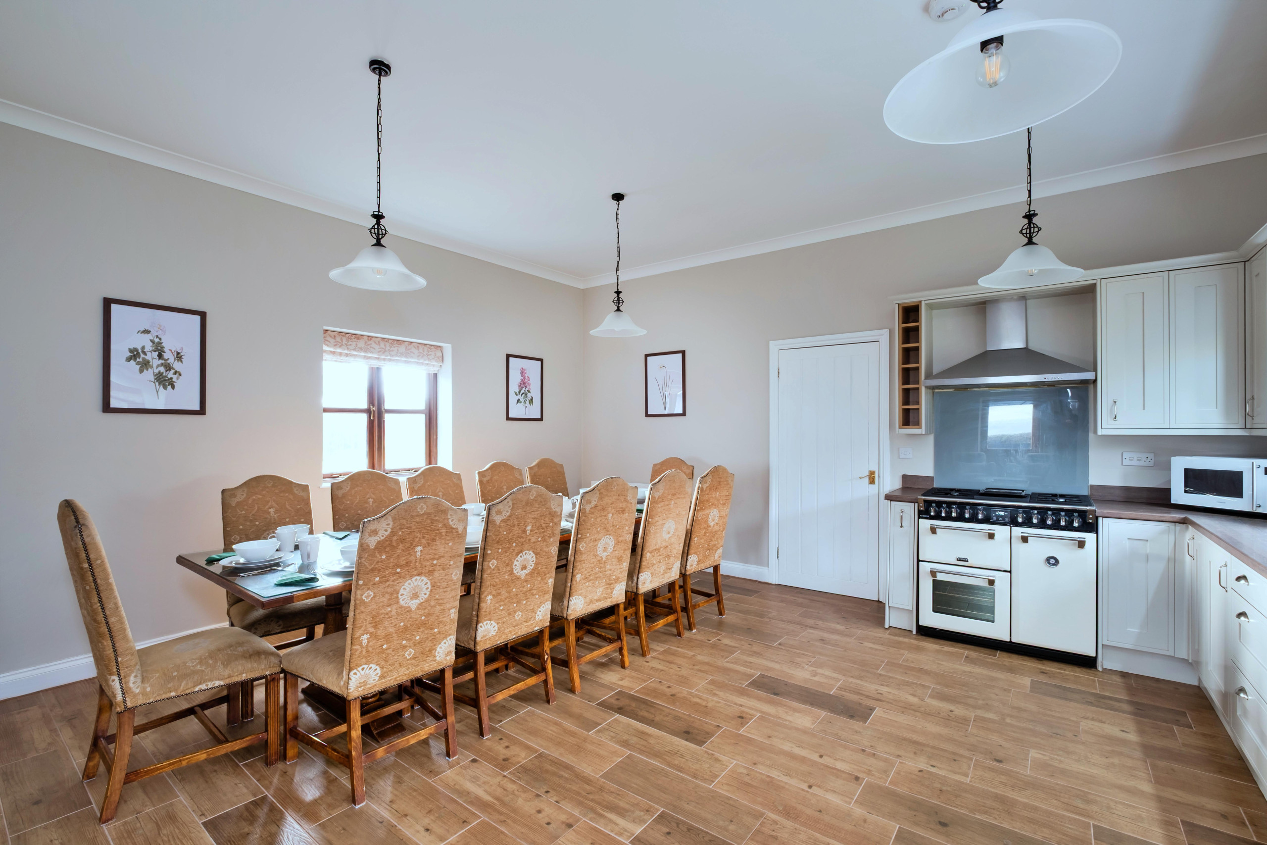The setting was beautiful and the cottage perfect for our needs. All the ensuite bath/shower rooms were modern and spotlessly clean. The beds were very comfortable and the bed linen spotless. The bedrooms were all of a good size and furnished well with plenty of cupboard space. The lounge and kitchen/diner accommodated the number easily. It was lovely to be greeted with bread, butter, milk, biscuits and wine on arrival. The kitchen was well stocked with crockery, cutlery, glasses and saucepans. The cooker was great for so many. A huge bonus was the swimming pool, tennis court and table tennis table in a lovely area for little ones to play. The house manager, Sharon, and the owners we met were very friendly and accommodating.