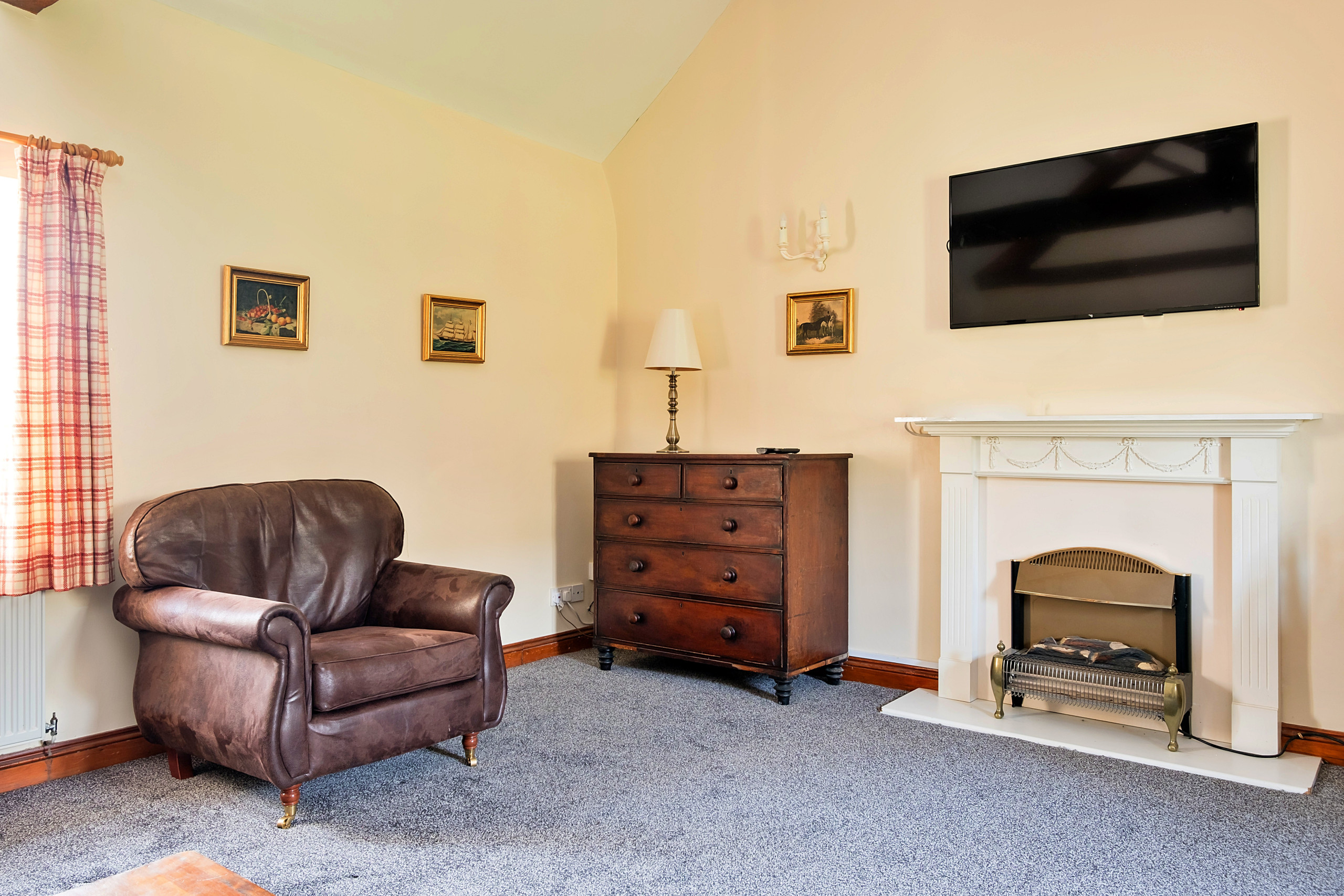 The spacious sitting room, complete with an electric fire, is the perfect place to relax after a day of exploring, while the bright and contemporary fully equipped kitchen - boasting an electric oven and hob, microwave, fridge, washer/dryer, and dishwasher - provides everything needed for a self-catered getaway.