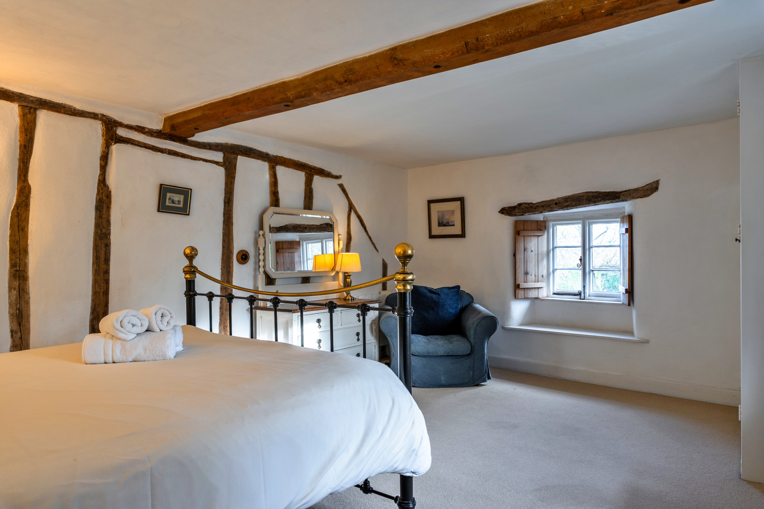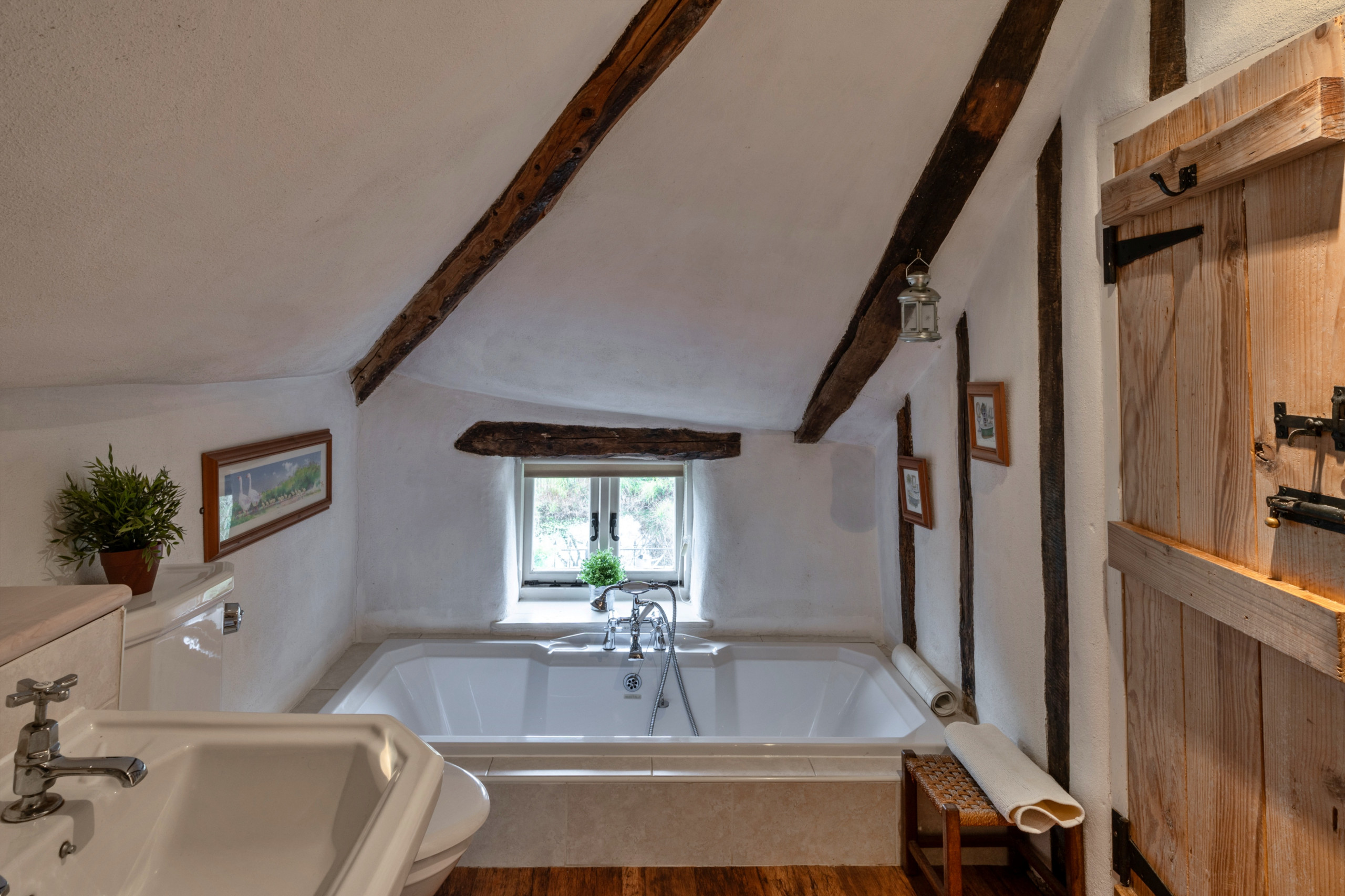 Syncocks Farm Cottage is a welcoming home set in the tranquil Devon countryside in the village of Petrockstow. Surrounded by open farmland and offering a private entrance. Syncocks Farm Cottage is a beautifully preserved Grade II listed home, with sections dating back to the mid-1300s. Constructed from traditional cob and stone, the cottage has been meticulously renovated using authentic materials and time-honoured techniques to protect its historic character. Exposed oak timbers and magnificent inglenook fireplaces with original bread ovens give the house a rich sense of heritage and create a warm, atmospheric setting that has proved especially appealing to previous guests.