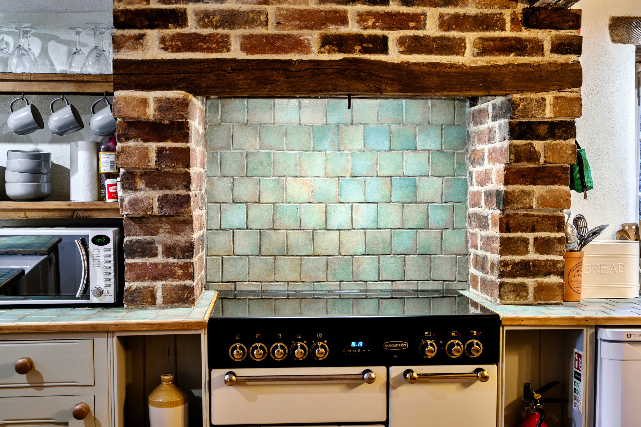Downstairs, the cottage offers comfortable and sociable living spaces designed for easy holiday living. The living room features a fireplace and TV, making it the perfect spot to unwind after a day out. A well-proportioned dining area provides plenty of space for shared meals, while the fully equipped kitchen caters for all self-catering needs and a full range of cookware and utensils. A washing machine is also available for added convenience.