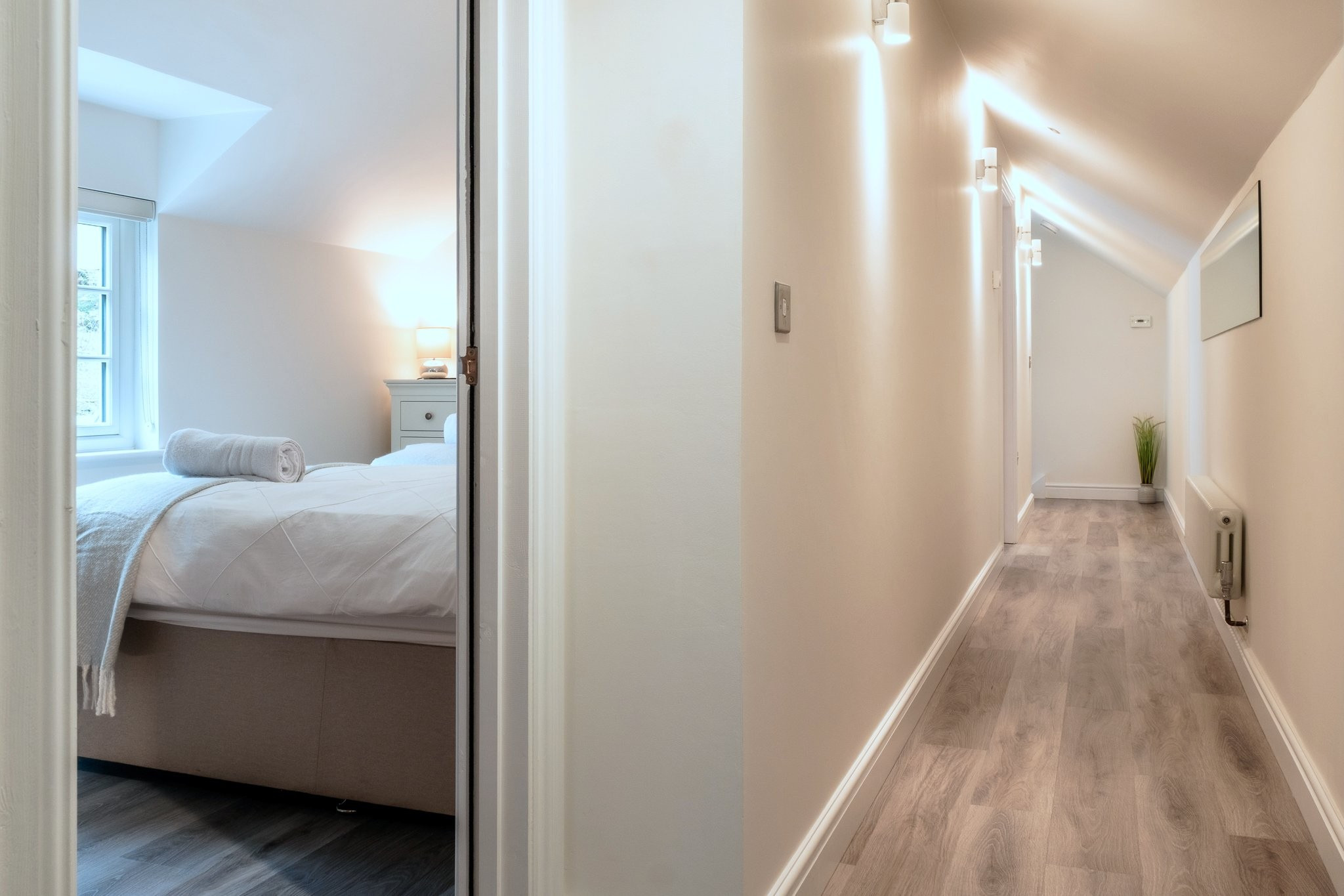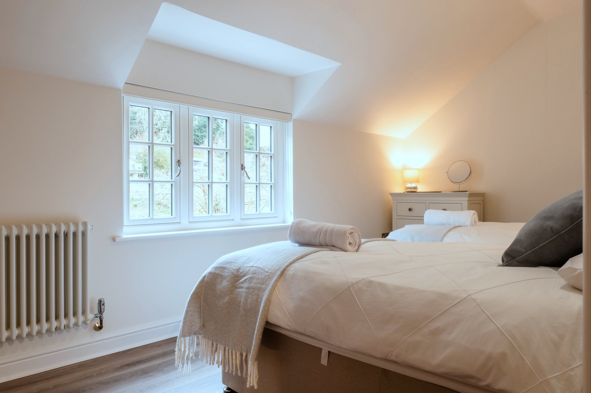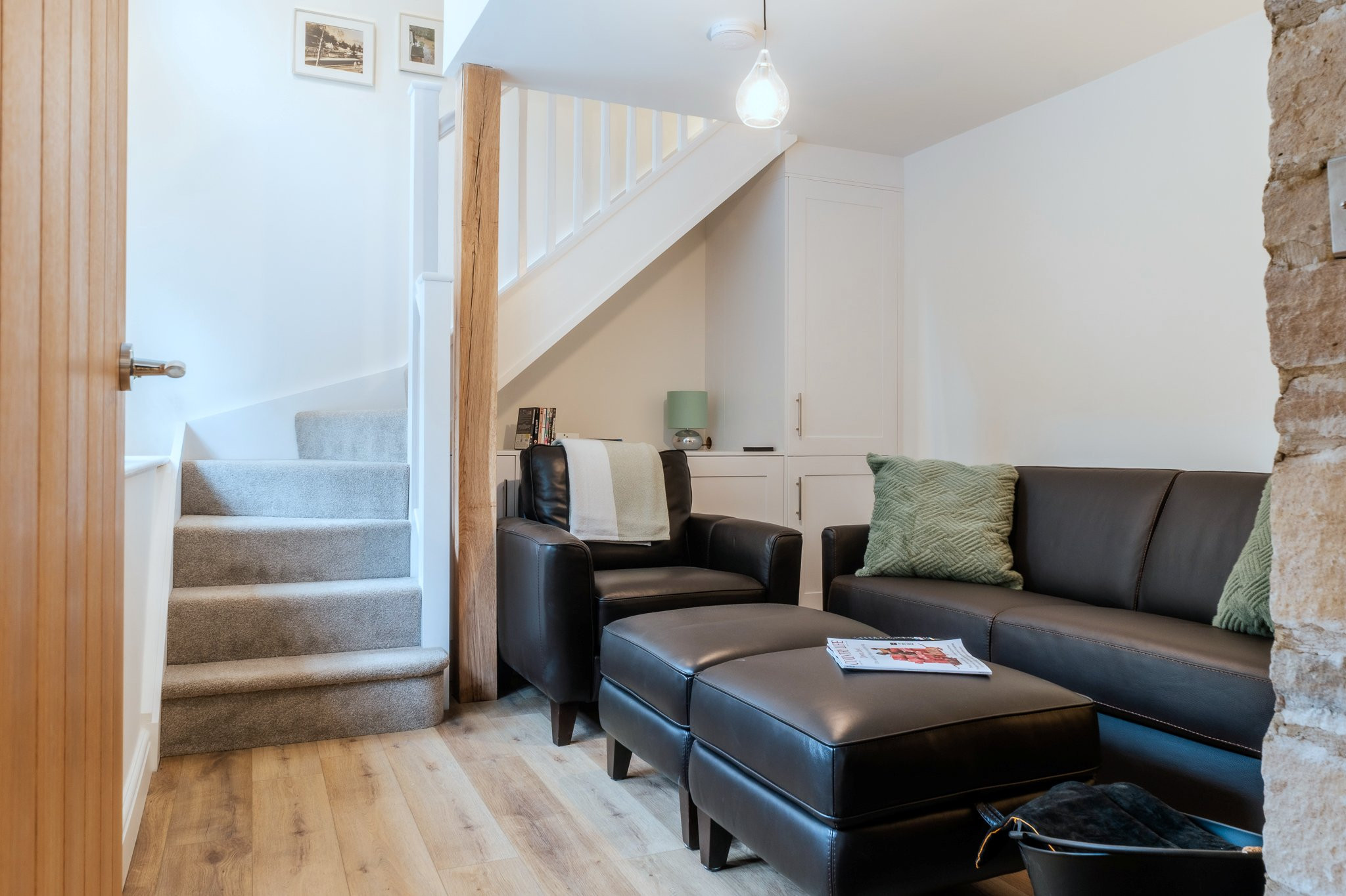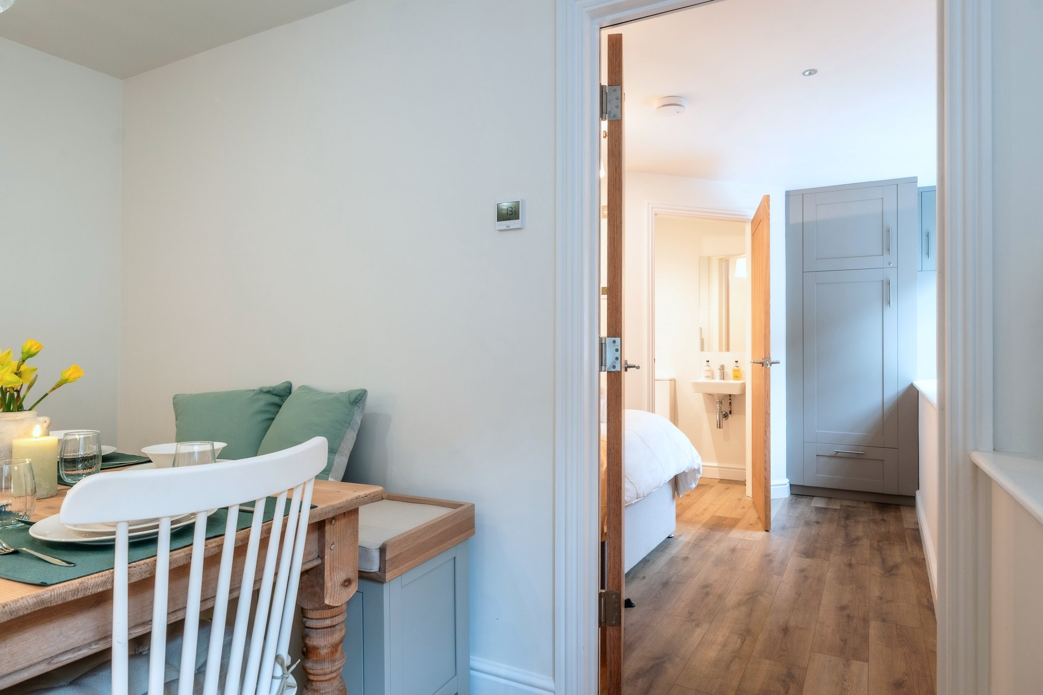 The cottage comfortably sleeps six guests across three beautifully appointed bedrooms: a ground-floor double room with en-suite shower, a spacious master king upstairs, and a twin room ideal for family or friends. A stylish family bathroom completes the space, featuring a freestanding bath and separate shower.