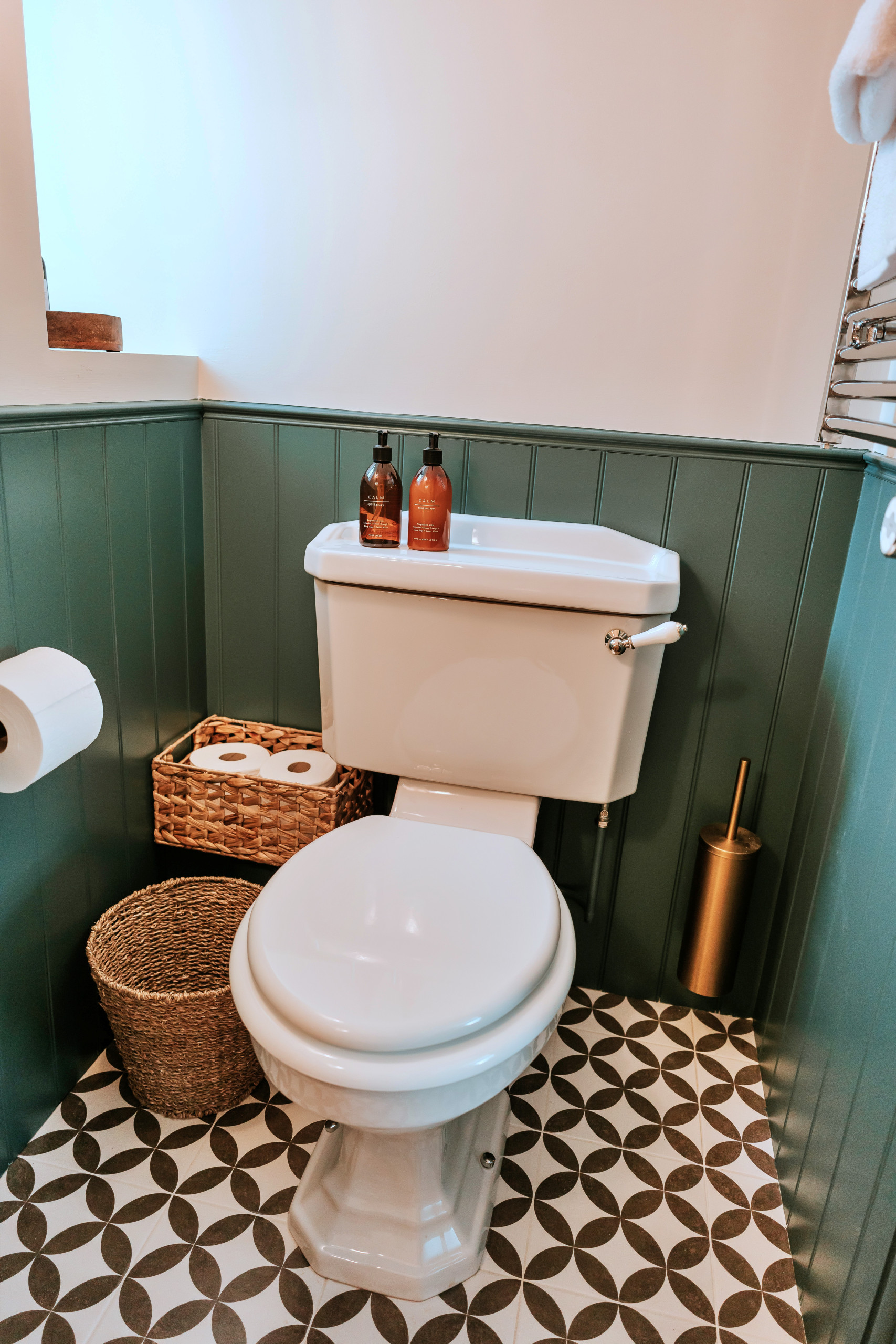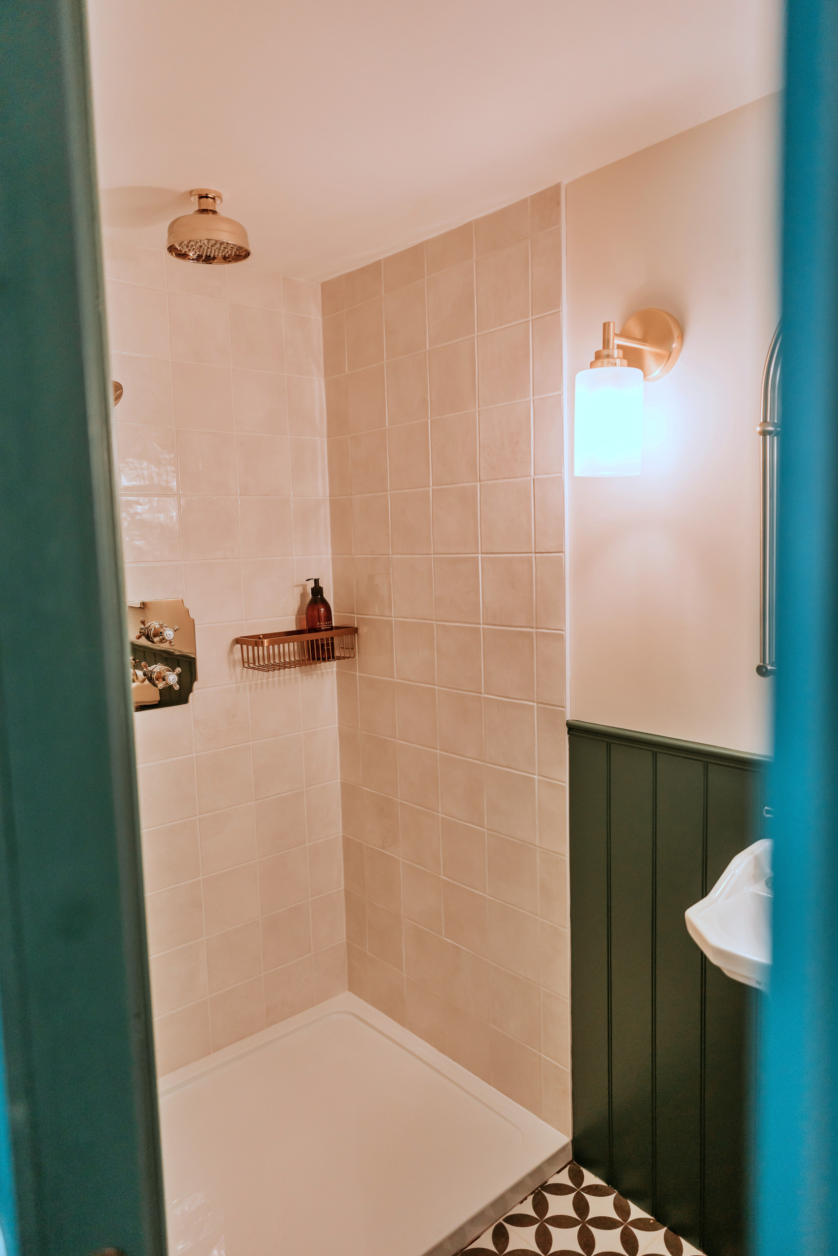 Upstairs, the bedroom offers a restful double bed dressed in soft linens, creating a serene space to unwind and recharge. The ensuite bathroom is fitted with a cubicle shower, heated towel rail, and WC with fresh towels and toiletries provided for your convenience.