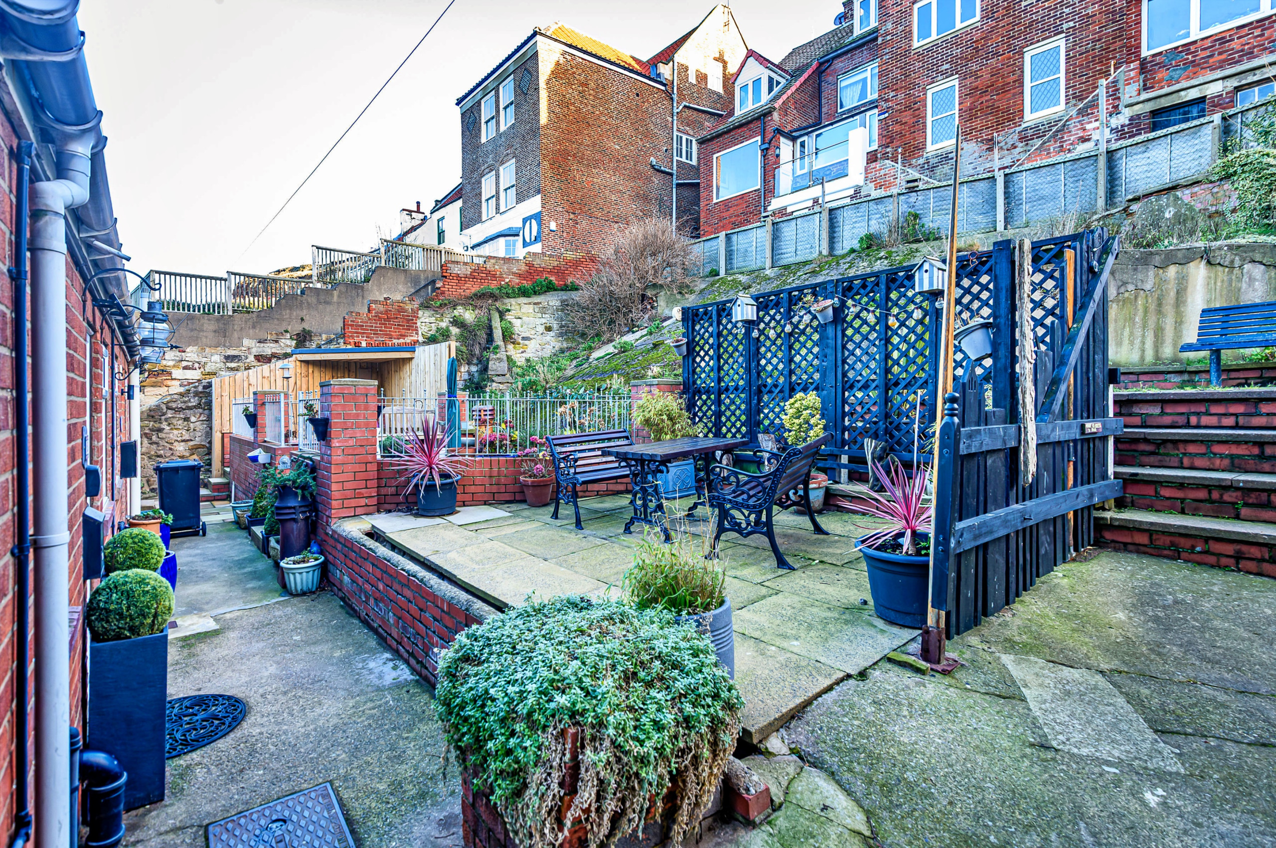 To the rear, No. 3 Sandside offers a generous outdoor area with seating for dining or relaxing.