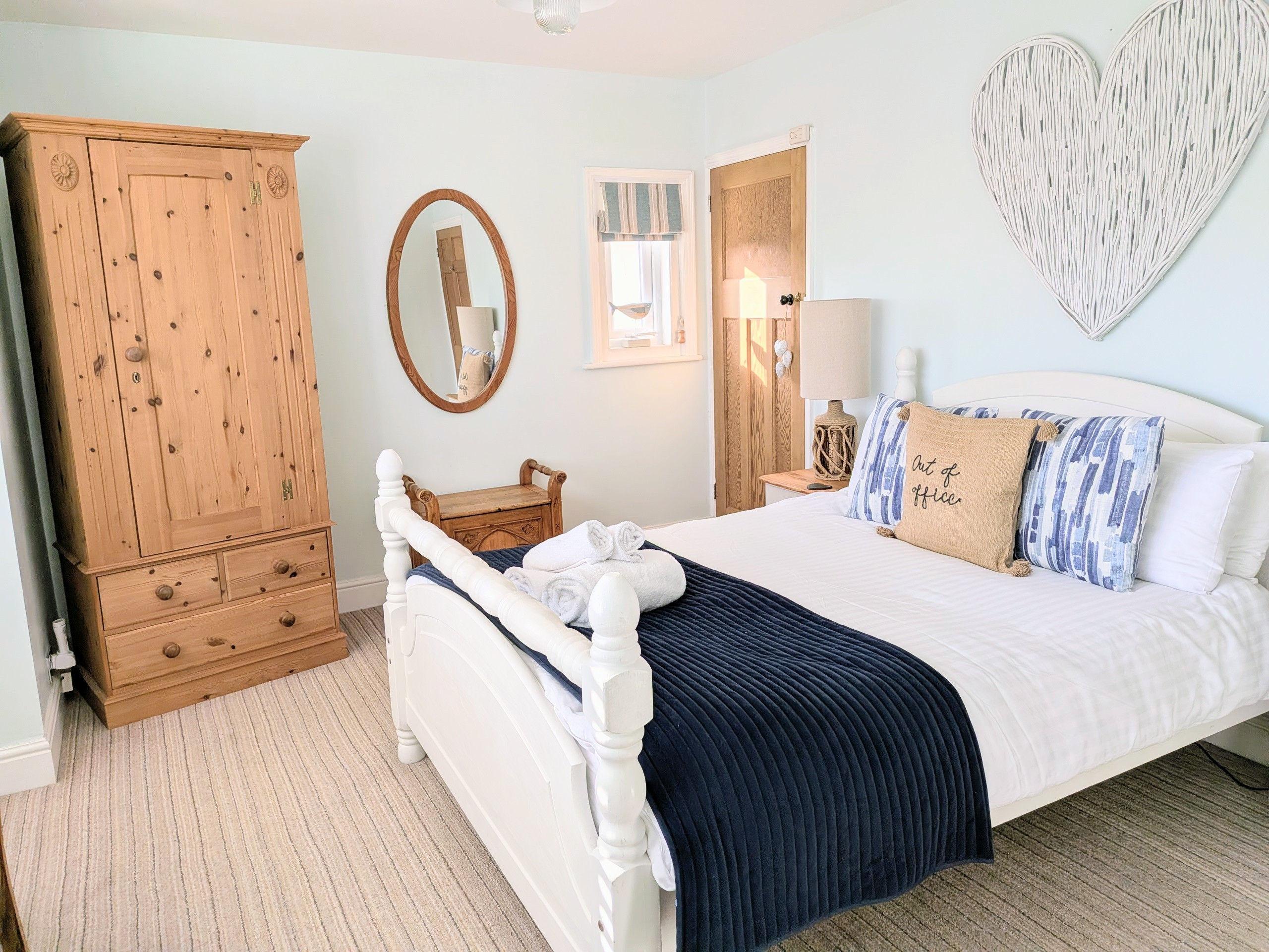 At the front of the house, the living room is brightened by a bay window that lets in plenty of natural light. It’s an inviting space to unwind after a day exploring the town or walking along the coastline. The kitchen and dining area sit at the heart of the cottage, offering ample room to cook, share meals, and spend time together comfortably.