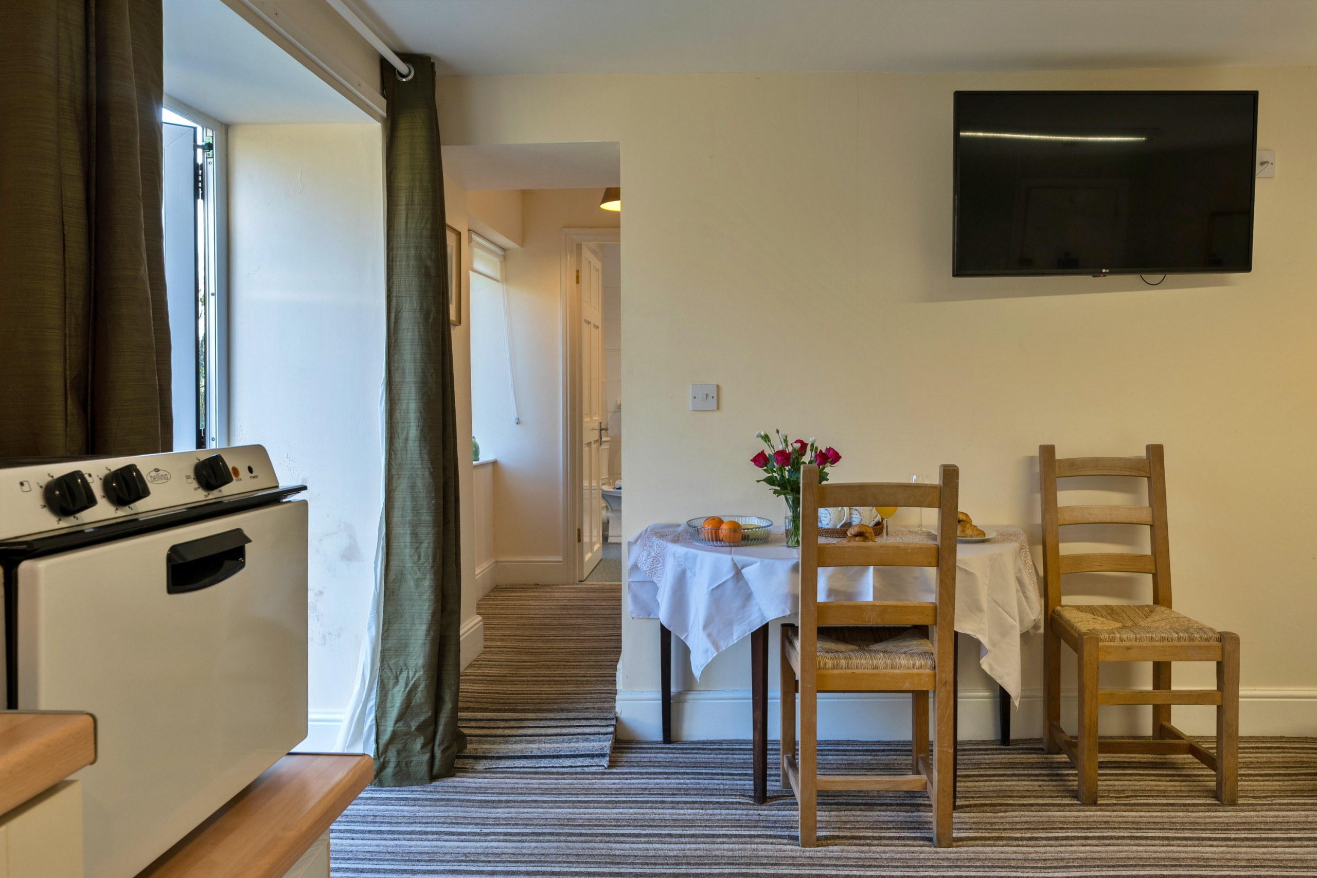 Lee is a welcoming dog-friendly ensuite studio apartment set within the peaceful courtyard accommodation of the Trimstone Manor estate, offering a comfortable and self-contained retreat for couples or solo travellers exploring North Devon. Located on the ground floor and separate from the Manor House, it provides a sense of privacy while still benefiting from access to the estate’s excellent shared facilities.