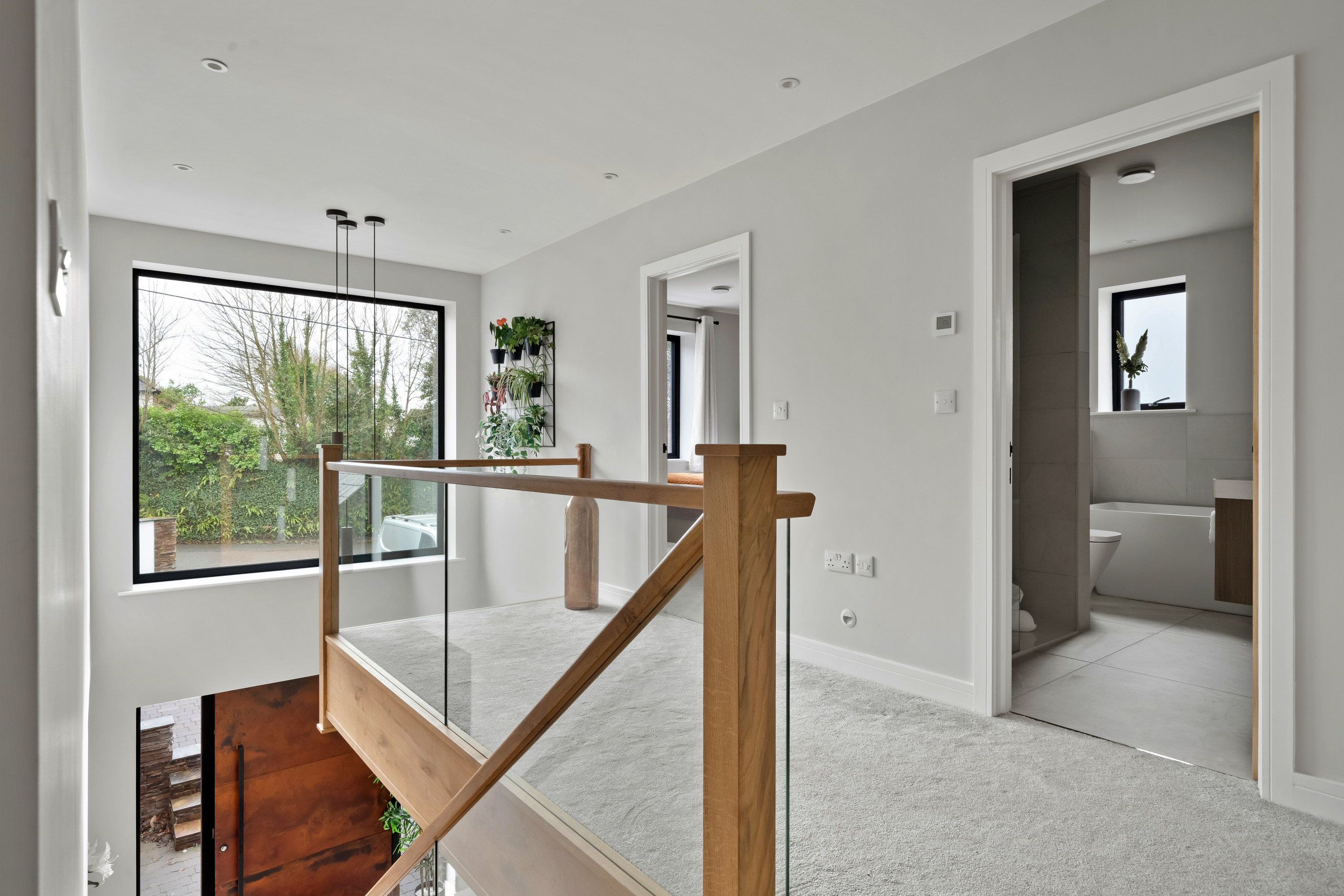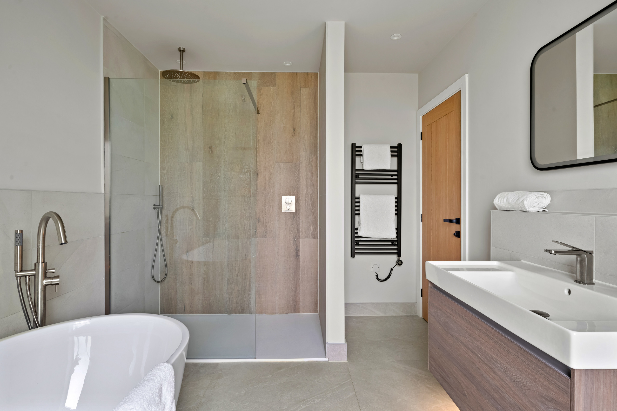 Orchard Rise offers flexible and well-planned accommodation across two floors. On the ground floor, there is a comfortable king-size bedroom. This bedroom is conveniently located close to shared bathroom facilities. An additional WC cloakroom on the ground floor adds further convenience for guests. Upstairs, the remaining bedrooms include an indulgent super-king bedroom with ensuite, two further king-size bedrooms (one ensuite and one using shared facilities), and a twin room, making the layout ideal for families and mixed groups. The combination of ensuite and shared bathrooms ensures a practical and comfortable stay for all guests.