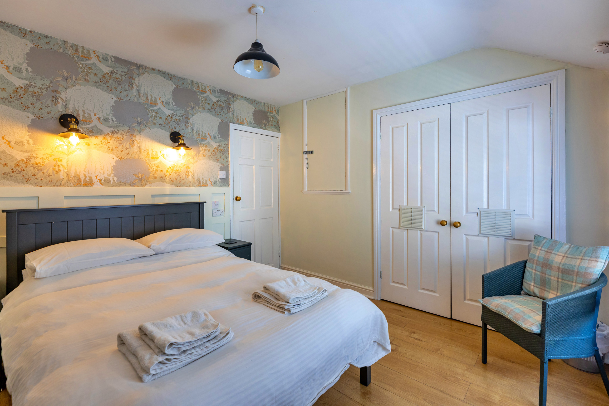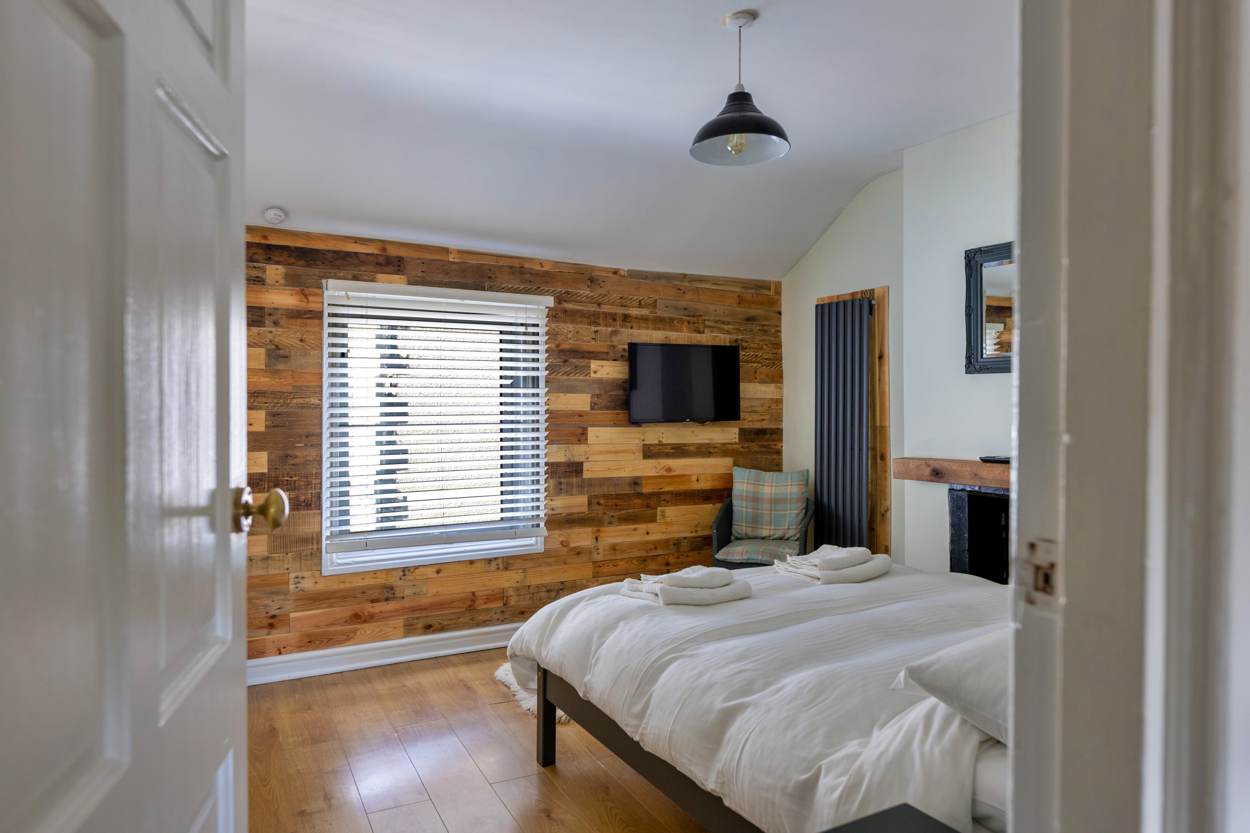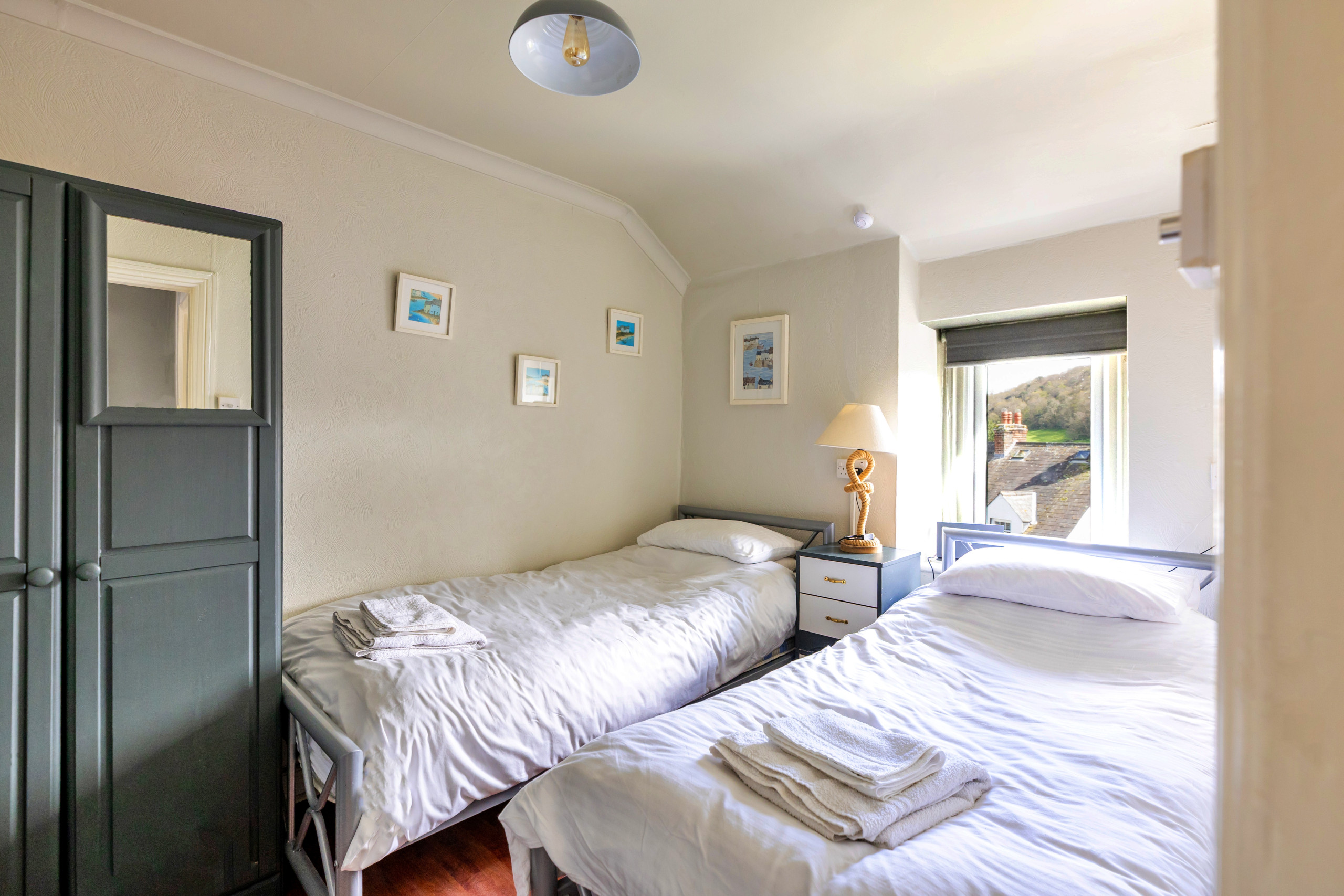 Upstairs, two bedrooms provide restful accommodation for up to four guests. Choose between a comfortable double and a twin room, both complete with Smart TVs and ample storage. A modern bathroom serves both rooms, ensuring convenience throughout your stay.