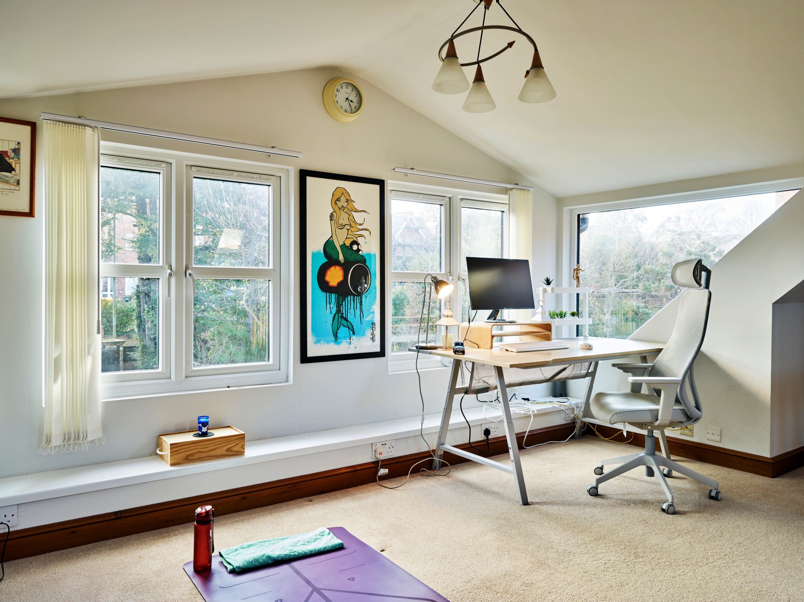 Separate from the main house, above the garage, is a versatile office or yoga studio, ideal for remote working, creative time or quiet practice away from the main living areas. Below, within the converted garage, is a shower room with WC and laundry room with washer and separate dryer, making this space practical as well as flexible. Outside, the property offers a fully fenced garden with garden furniture for outdoor dining and relaxing, along with an outdoor hot and cold mains shower, perfect for rinsing off after beach days or muddy dog walks. Open-air parking is available on site.